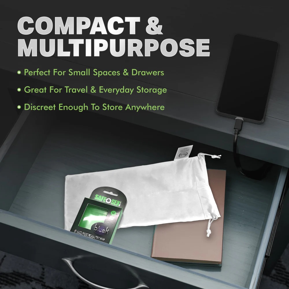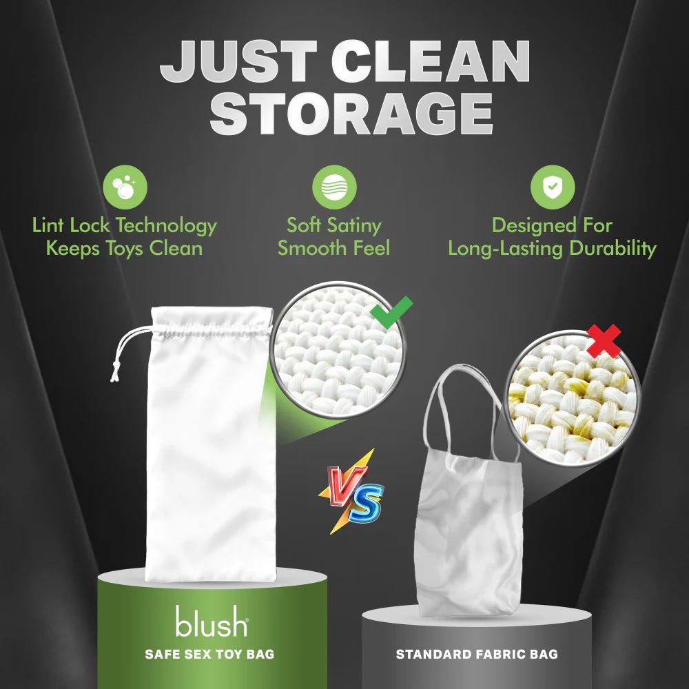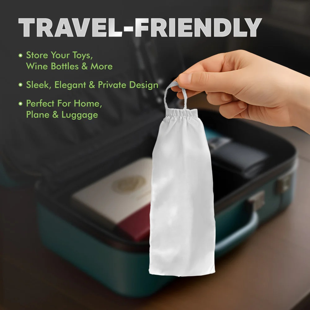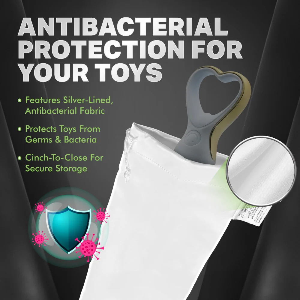 Pytlík na erotické pomůcky má speciální antibakteriální povrch a stahovací šňůrky pro bezpečné uložení a ochranu vaší hračky.