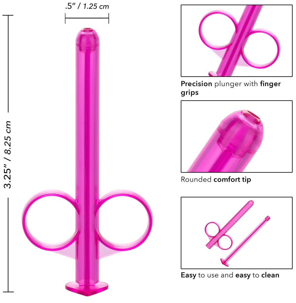 Použití je jednoduché – sundejte silikonovou krytku, natáhněte tekutinu do aplikátoru (můžete rovnou z lahvičky), nechejte vytéct trošku gelu na jeho špičku (pro snadnější zasouvání do vaginy nebo zadečku), a pak už jen pomalu stlačujte píst. Opakujte podle potřeby.