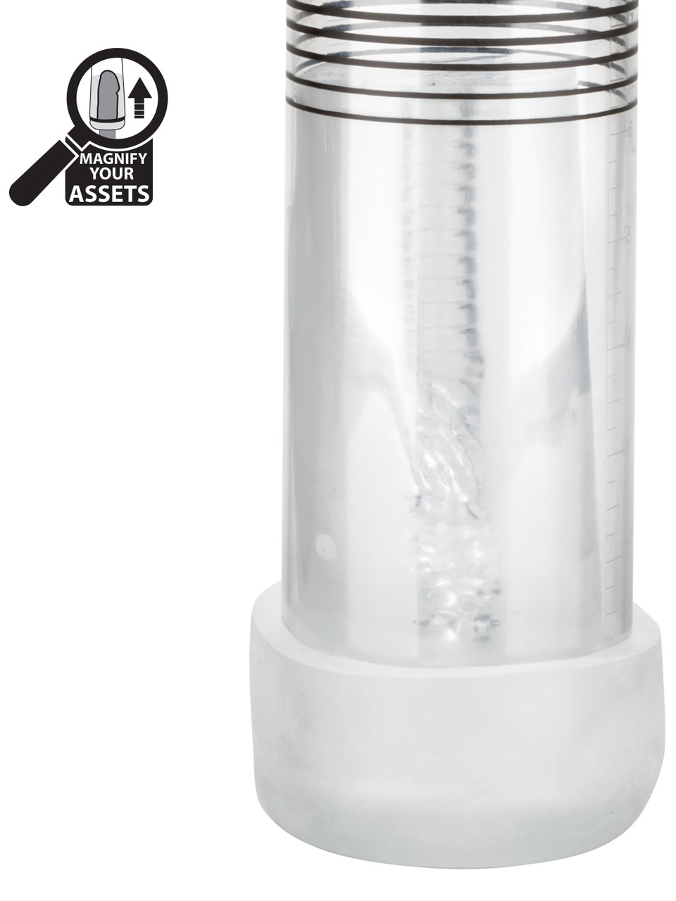 Pevný plastový tubus je transparentní a najdete na něm měřicí stunici v cm, takže můžete sledovat, jak se do vašeho penisu hrne krev a jak se zvětšuje.