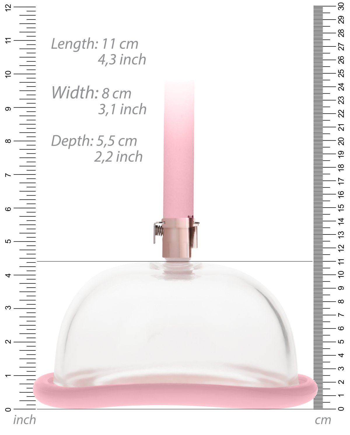 Pumpa je vyrobená z průsvitného plastu, takže můžete sledovat, jak se při pumpování hrne do vašich stydkých pysků a klitorisu krev a jak se postupně zvětšují.