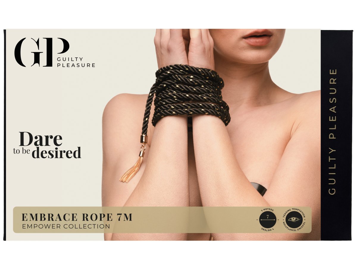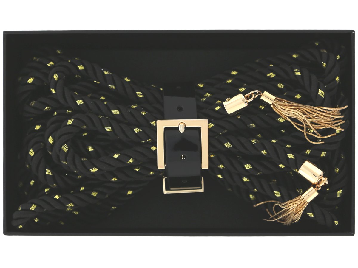 Lano má konce ozdobené zlatými střapci a dostanete k němu i řemínek s přezkou pro snadné uložení. Je měkké, pružné a příjemné na dotek – hodí se i na delší hry.