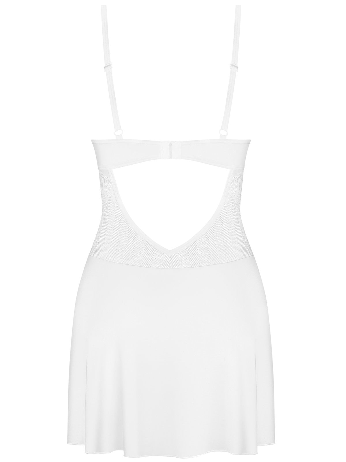 Zahalte se do něžnosti. Bílá košilka s krajkou a tangy Alissium od Obsessive je dokonale svůdná a pohodlná za každé situace.