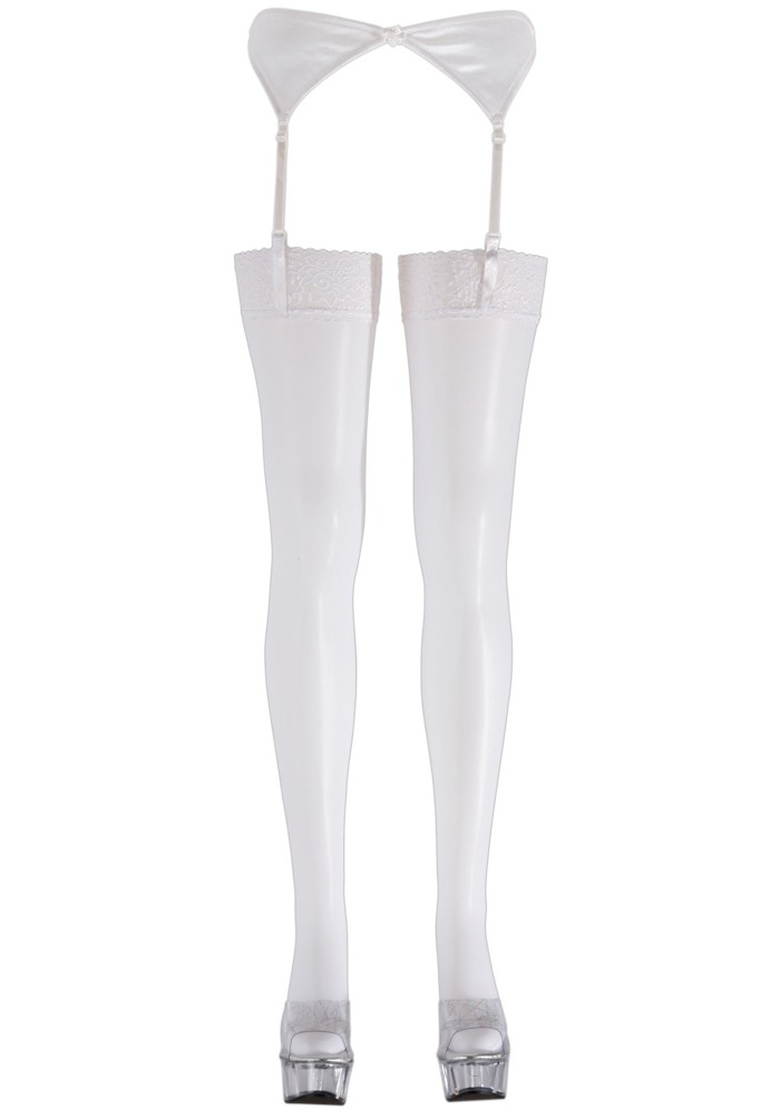 Bílé punčochy s krajkovým lemem Cottelli