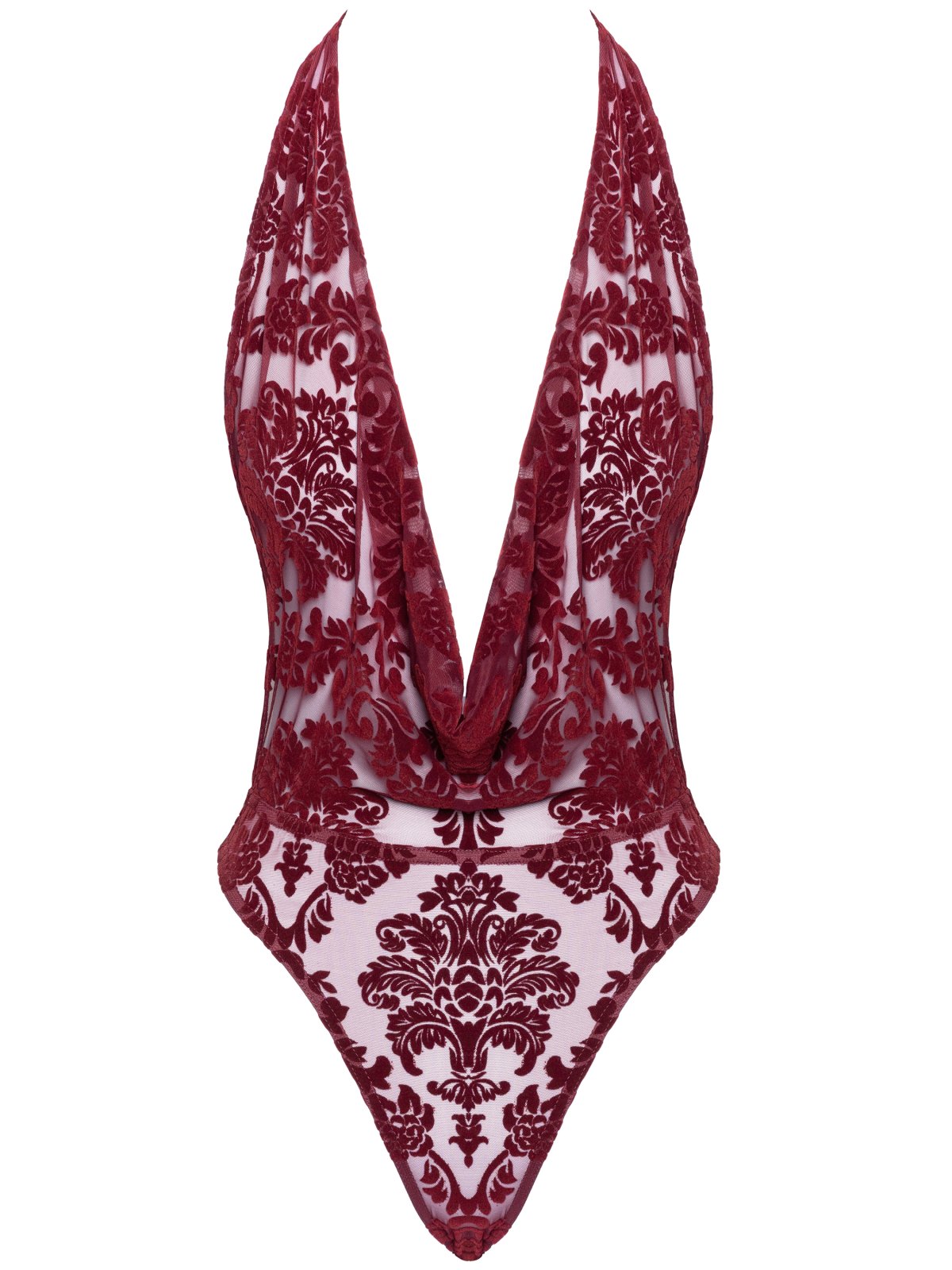 Body je ušito z měkké a elastické průsvitné látky se sametovým květinovým potiskem. Díky pružnosti látky se přizpůsobí křivkám těla a pohodlně se nosí.