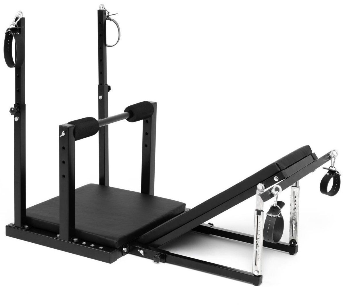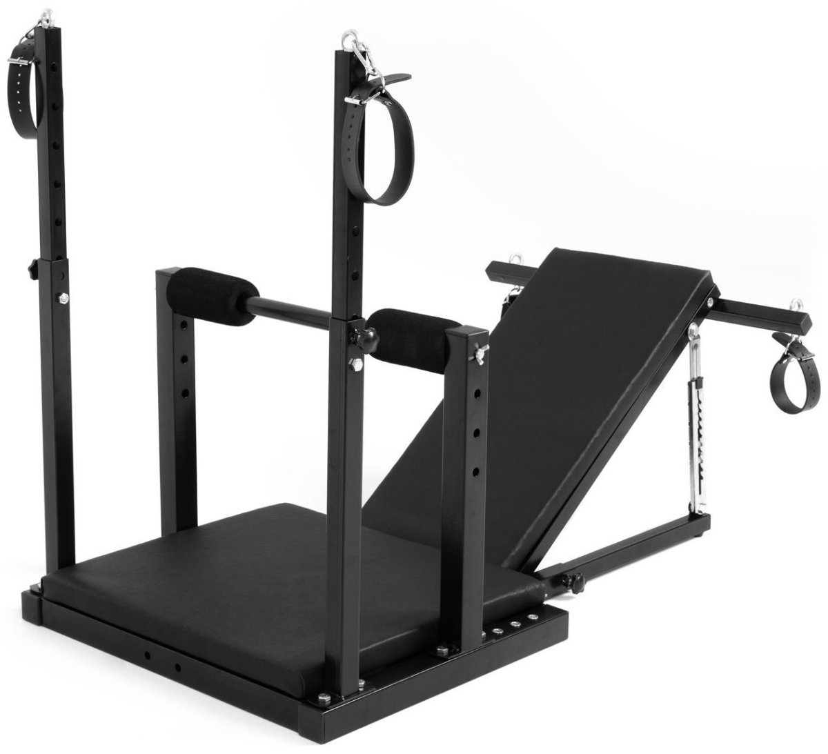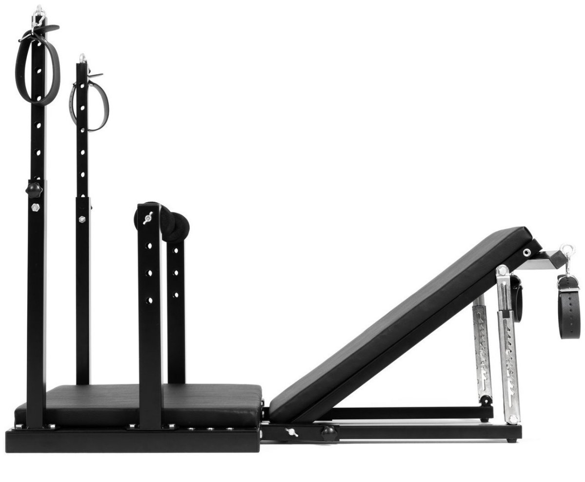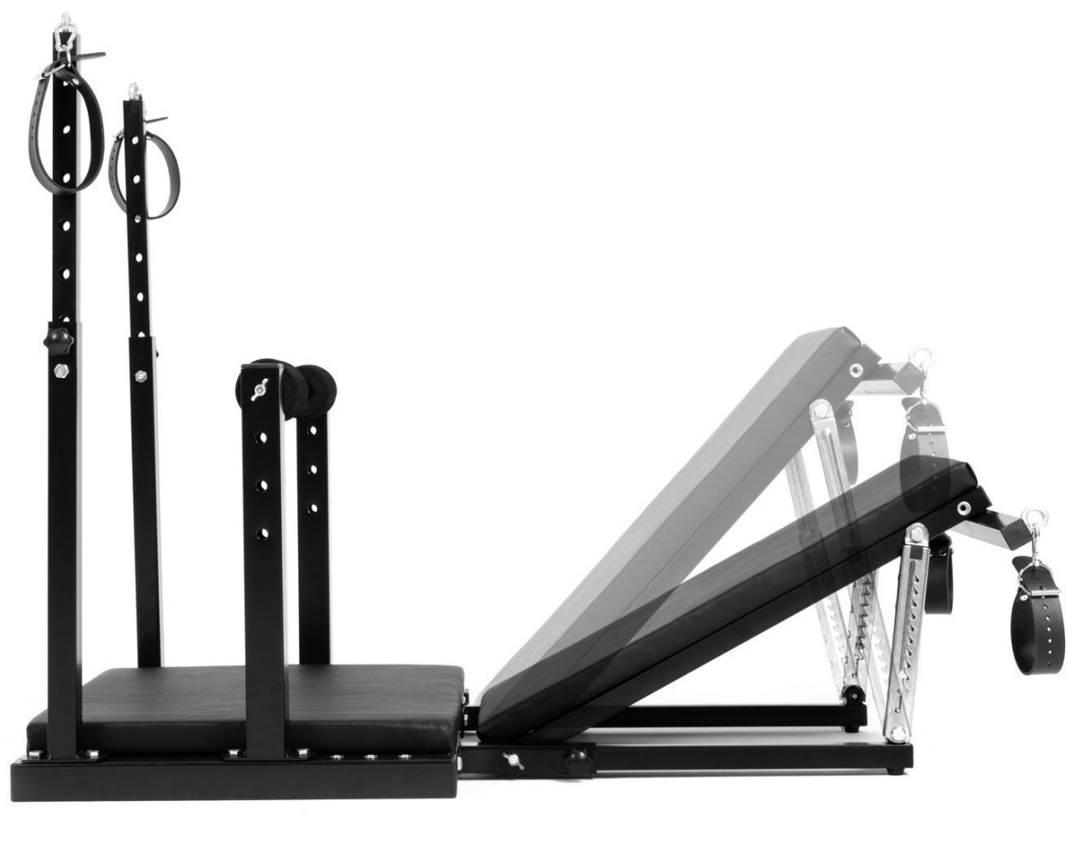Bondage křeslo vám umožňuje experimentovat s řadou různých poloh. Má nastavitelné opěradlo, odnímatelnou střední opěrku a nastavitelnou výšku.