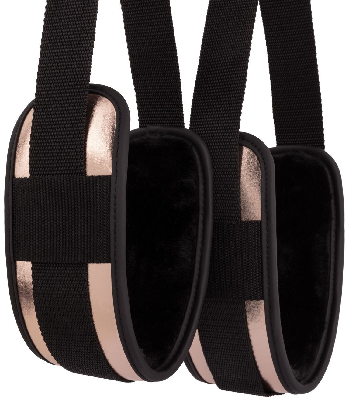 Smyčky na nohy jsou k polštáři připevněny napevno pomocí délkově nastavitelných popruhů. Smyčkami buď provléknete stehna, nebo do nich zapřete chodidla podobně jako do třmenů – udrží nohy ve vzduchu, takže při sexu dosáhnete lepšího úhlu a hlubšího průniku.