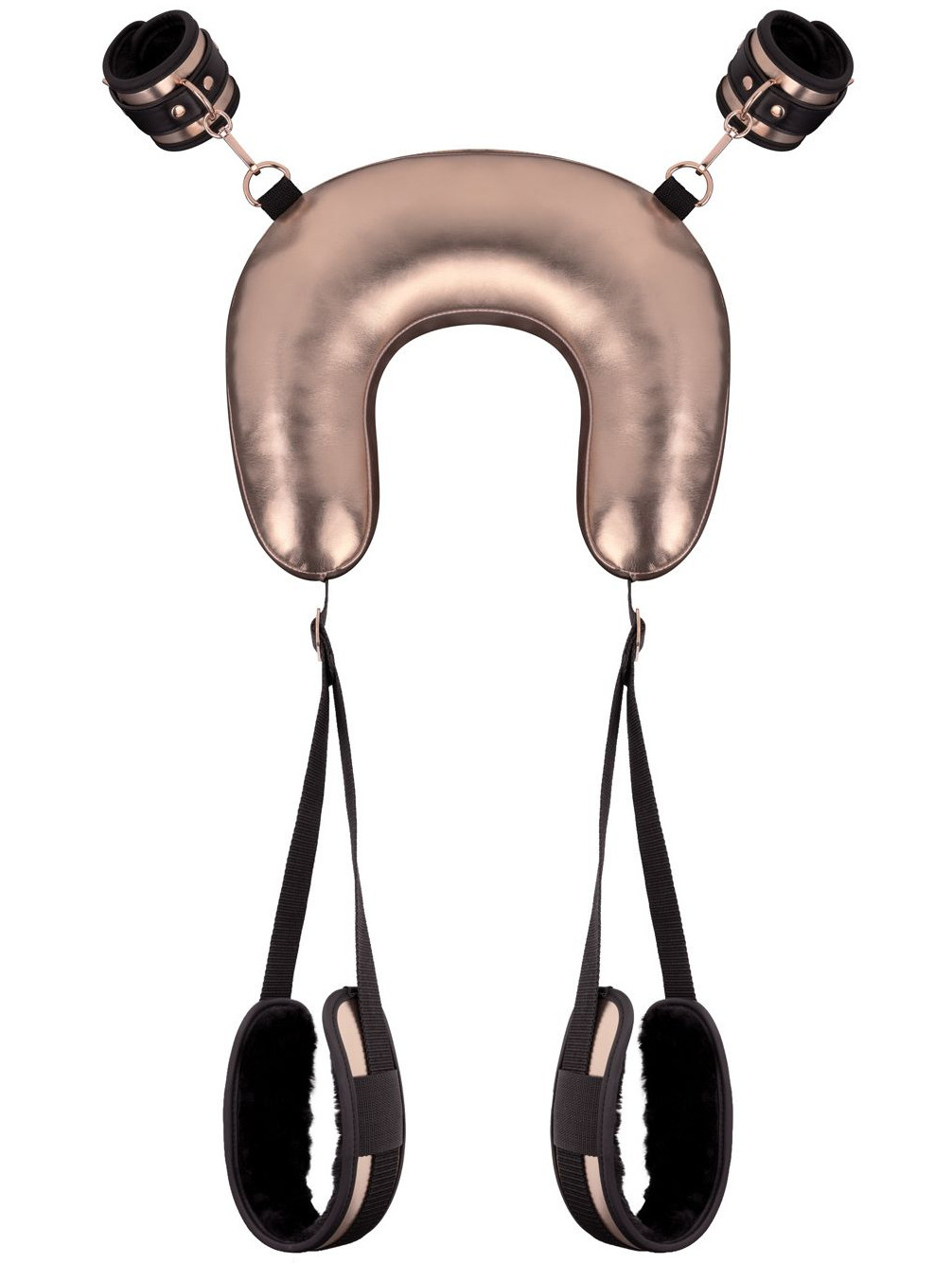 Pouta na ruce jsou k polštáři připevněna pomocí karabinek, takže je můžete jednouduše odepnout a použít i samostatně nebo spolu s jinými BDSM pomůckami. Mají zapínání na přezku – snadno si nastavíte jejich velikost.