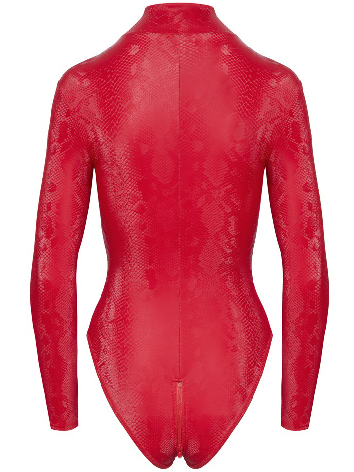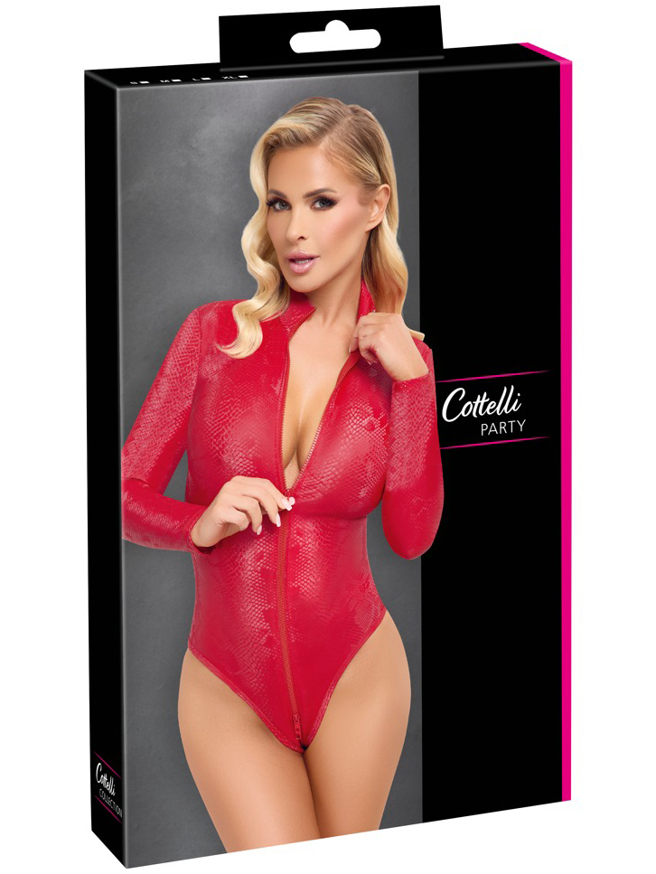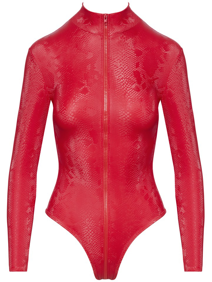 Body je ušito z matně lesklé elastické látky – pohodlně se nosí a dokonale obepne tělo. Zip usnadňuje oblékání a přístup k ňadrům, klínu i zadečku, aniž byste se musela svlékat.