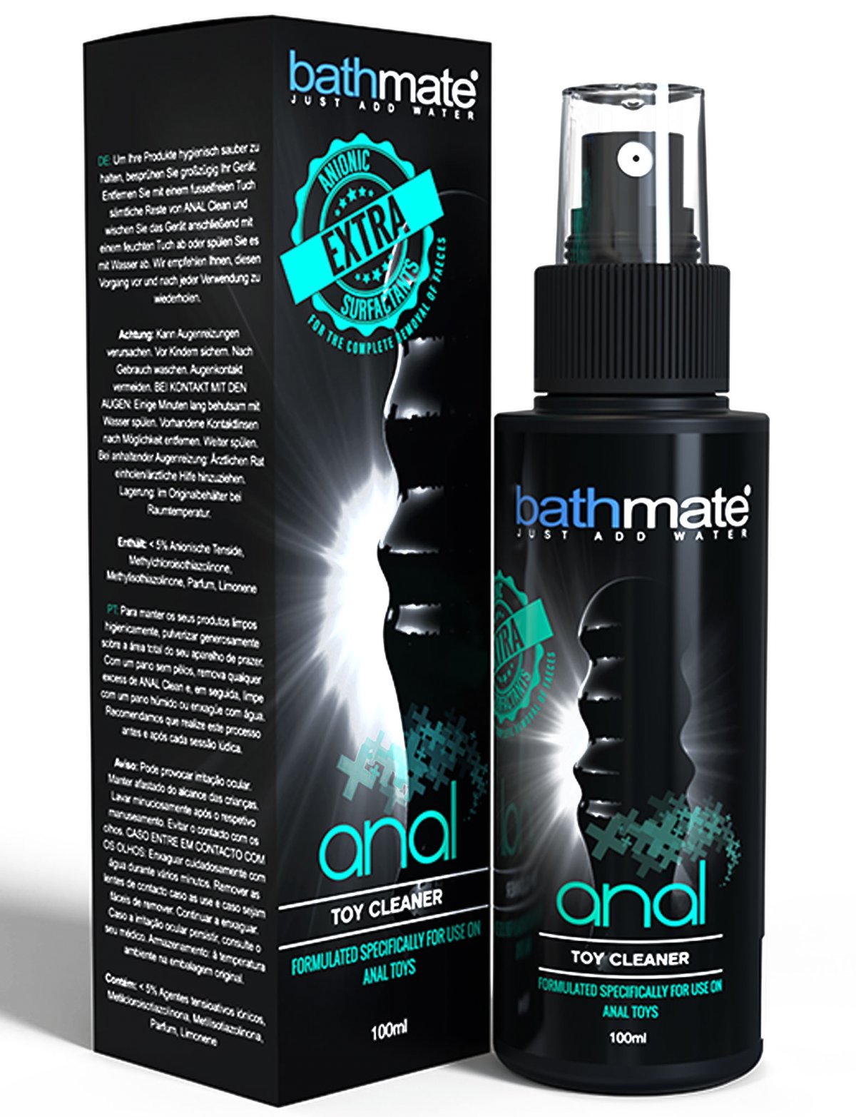 Čisticí sprej byl vyvinutý speciálně pro anální hračky. Obsahuje aniontové povrchově aktivní látky, které rychle a spolehlivě odstraňují všechny druhy bakterií i zbytky stolice.