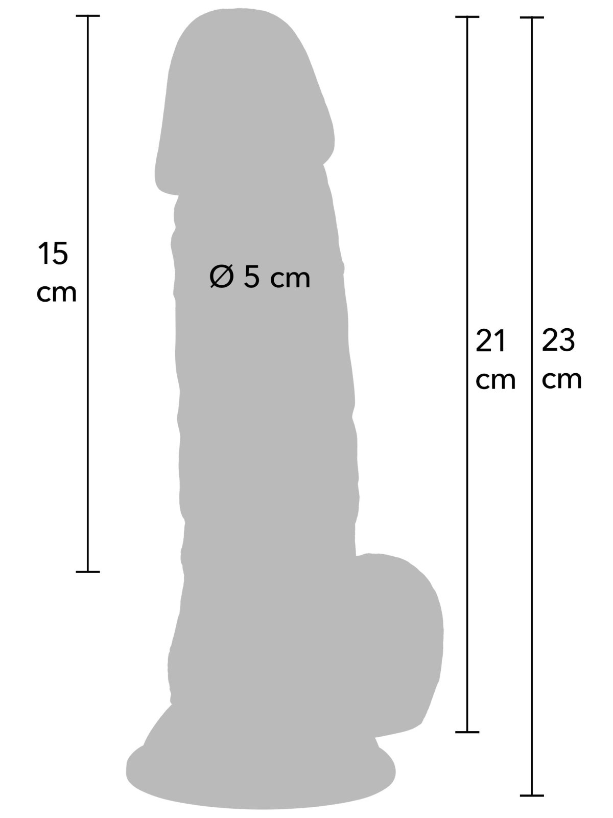 Dildo je ideální pro vaginální i anální potěšení a má silnou přísavku – díky ní si užijete hands-free masturbaci, nebo ho upnete do postroje a použijete jako připínák.