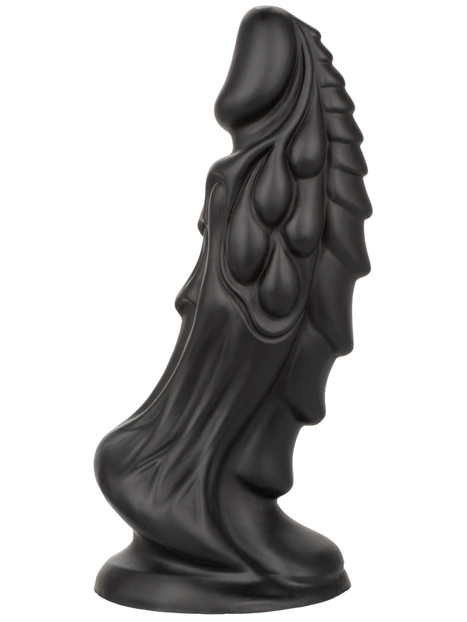 Dildo má velký průměr a je výrazně tvarované, takže zajistí intenzivní stimulaci vaginy i zadečku. Díky zúžené špičce se snadno zasouvá a výrazně zahnuté tělo zajistí přesnější stimulaci bodu G či prostaty.