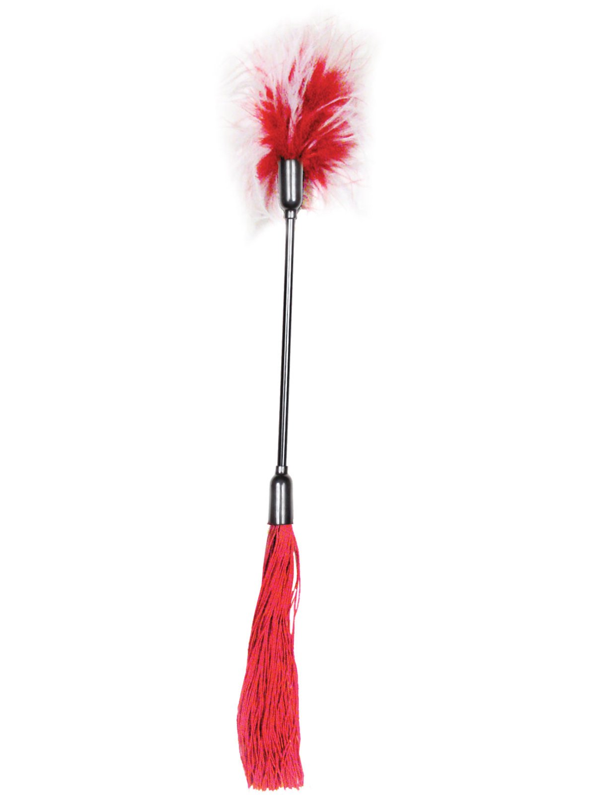 Důtky s latexovými třásněmi a peříčkovým šimrátkem S&M Whip and Tickle červené