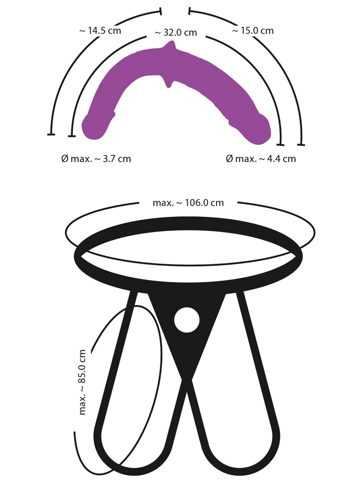 Strapon tvoří 2 různě velká realistická dilda s krásně vymodelovanými detaily (jsou pevně spojená). Jedno dildo je větší, druhé menší – je jen na vás, které koho potěší.