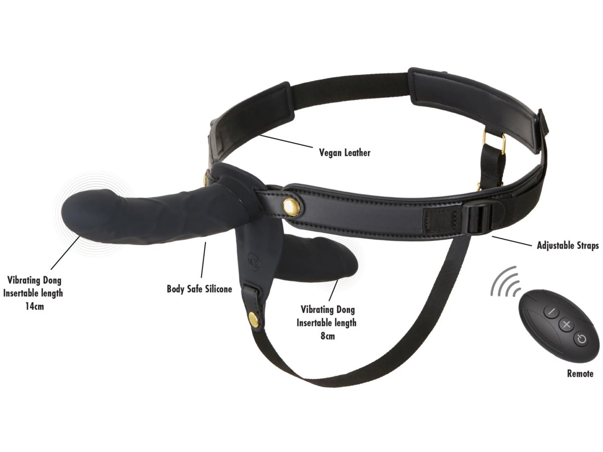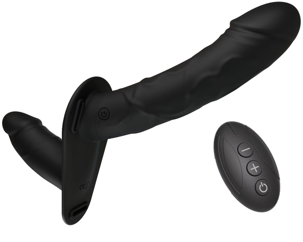 Strap-on je složený ze 2 vibračních dild, takže poskytne potěšení oběma v páru – vnitřní vaginální dildo potěší bod G, to vnější rozvibruje prostatu či bod G.