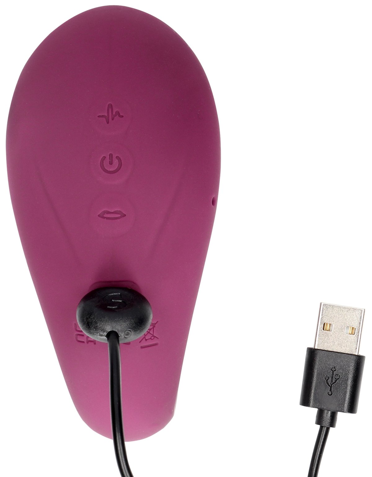 Jak se ovládá? Pro zapnutí/vypnutí vibrátoru podržte tlačítko se symbolem vypínače po dobu 3 sekund. Krátkým stiskem příslušného tlačítka zapnete vybranou funkci, podržením stejného tlačítka po dobu 3 sekund ji zase vypnete. Tlačítkem se symbolem vypínače ovládáte vibrace ve vnějším rameni, tlačítkem s vlnkou vibrace v zasunutelné části a tlačítkem se rty sání.