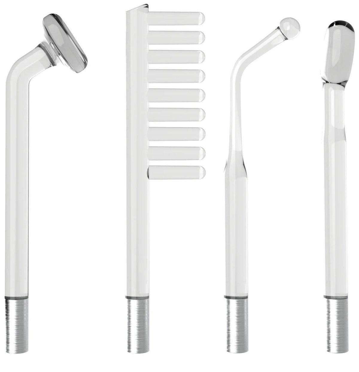 V sadě najdete 4 skleněné trubičky – jsou různě tvarované, takže nabídnou různorodou stimulaci. Po zapnutí vyzařují trubičky červené světlo.