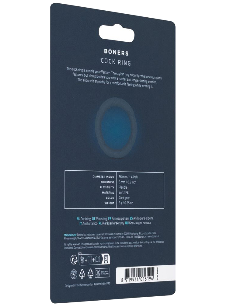 Kroužek je hladký a pružný, takže se snadno nasazuje a pohodlně se nosí. Zároveň poskytne kvalitní zaškrcení a pomůže k lepší a déletrvající erekci.