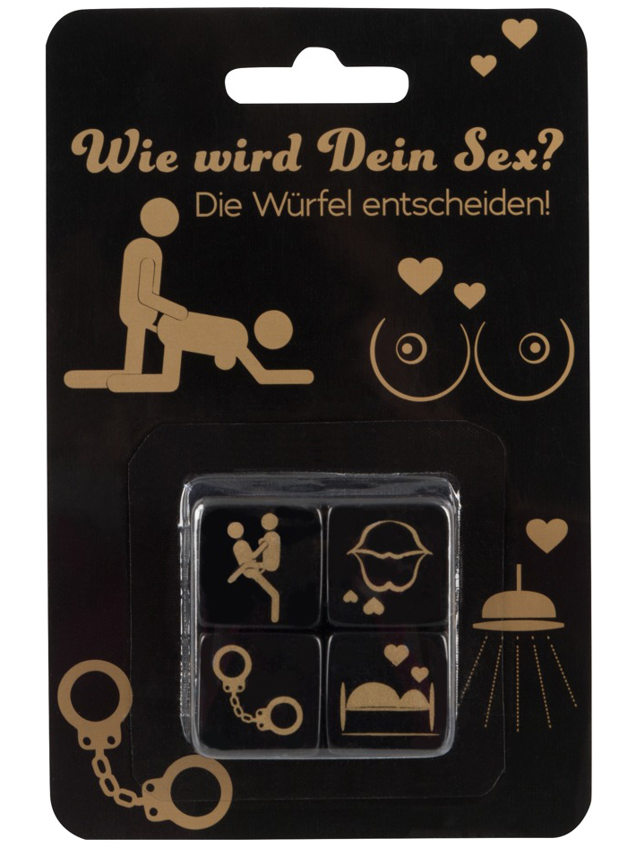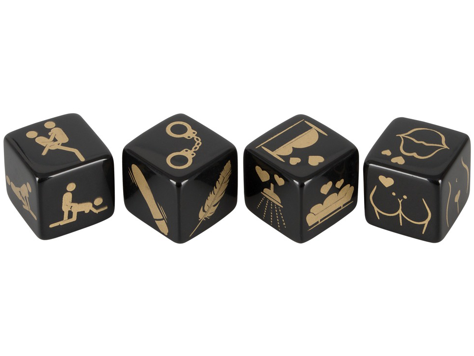 V balení najdete čtyři kostky s obrázkovými symboly - jedna určuje milostnou polohu, druhá část těla, se kterou si budete hrát, třetí místo, kde si "zadovádíte", a čtvrtá erotickou pomůcku, kterou během hrátek použijete.