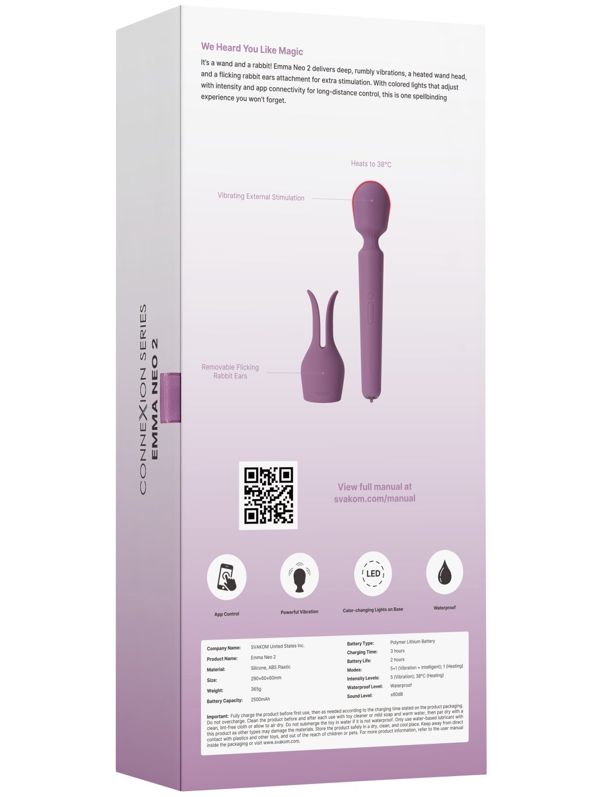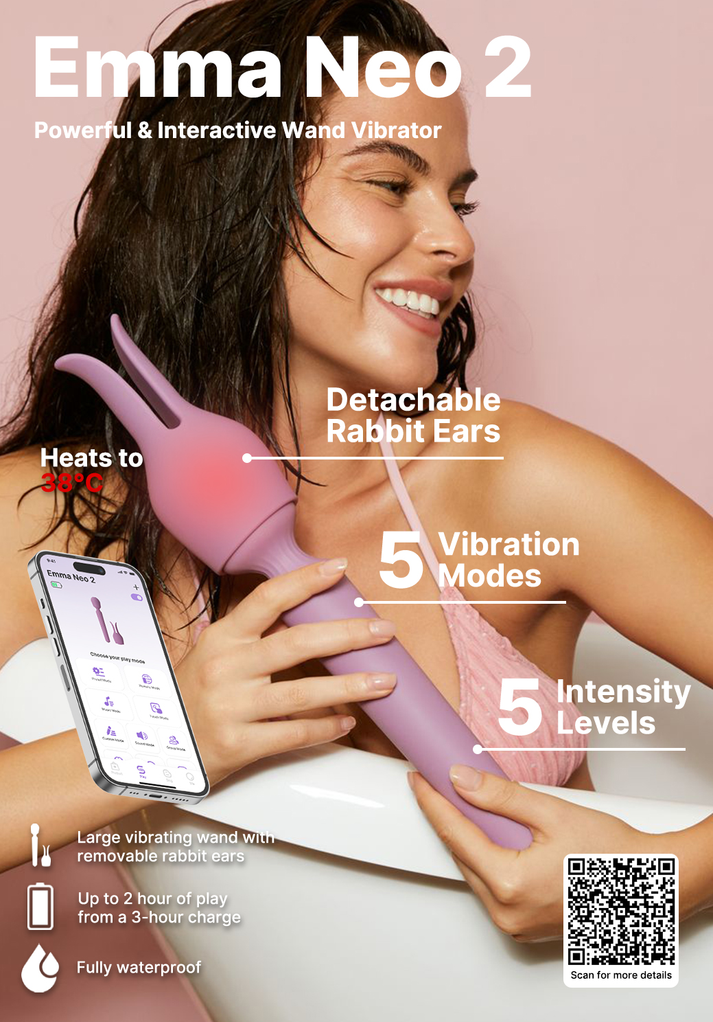 Hlavice má také speciální inteligentní mód, během kterého napodobuje vibracemi rytmus sexu, a hřejivou funkci – během chvilky se zahřeje až na 38 °C.