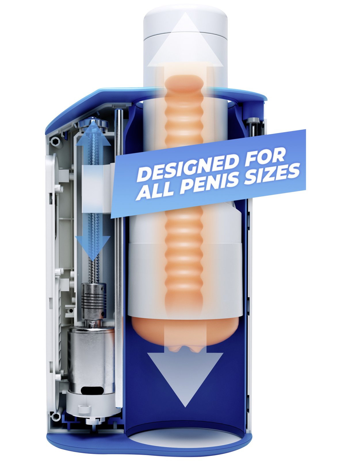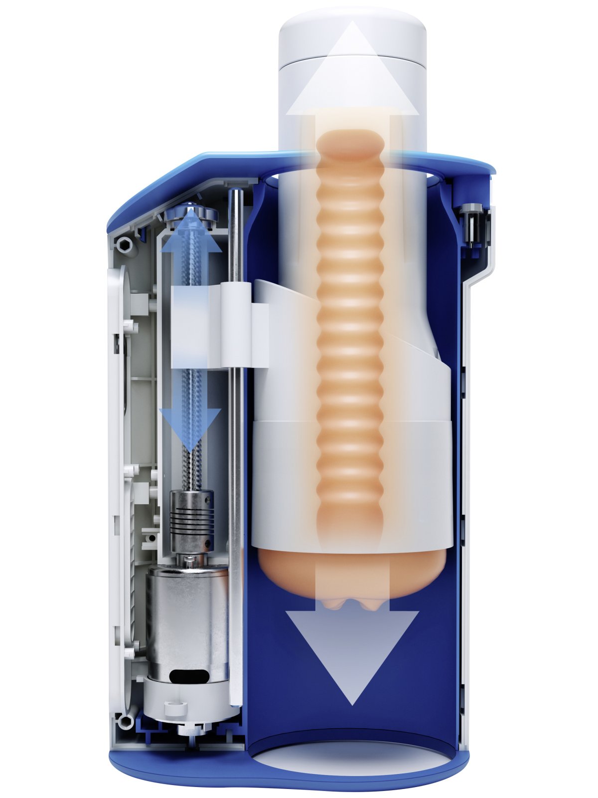 Masturbátor má systém vodicích šroubů z oceli – jedná se o průmyslový motorový systém určený pro dlouhodobé používání. Je napájený ze sítě, takže mu nikdy nedojde šťáva (pokud vám zrovna nevypadne elektřina).