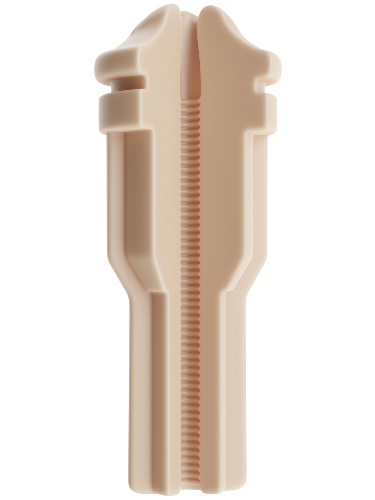 Do části s motorem snadno upnete plastové pouzdro s vnitřní vložkou. Ta je vyrobená z měkkého a pružného realistického materiálu, který věrně imituje lidskou pokožku a je velice příjemný na dotek.
