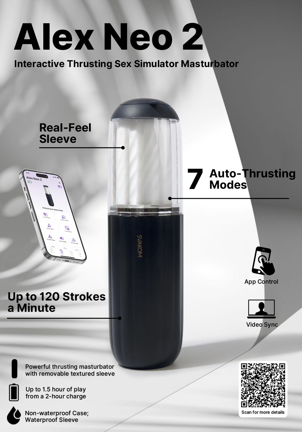 Potěší vás celkem 7 stimulačními programy. Pro více zábavy stačí masturbátor propojit s mobilní aplikací přes Bluetooth. Mobilem můžete masturbátor ovládat prakticky odkudkoliv na světě.