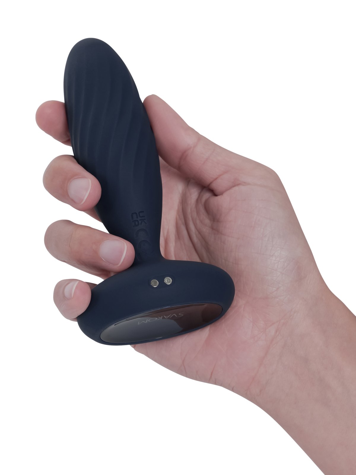 Anální zarážka zajistí bezpečné hrátky a najdete na ní nejen ovládací tlačítko, ale i konektor pro nabíjení magnetickým USB kabelem a indikátor stavu baterie.