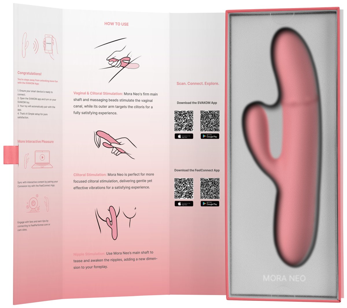 Vibrátor Mora Neo stimuluje bod G, poševní stěny a klitoris najednou. Můžete ho ovládat mobilem a propojit s interaktivními porno videi.