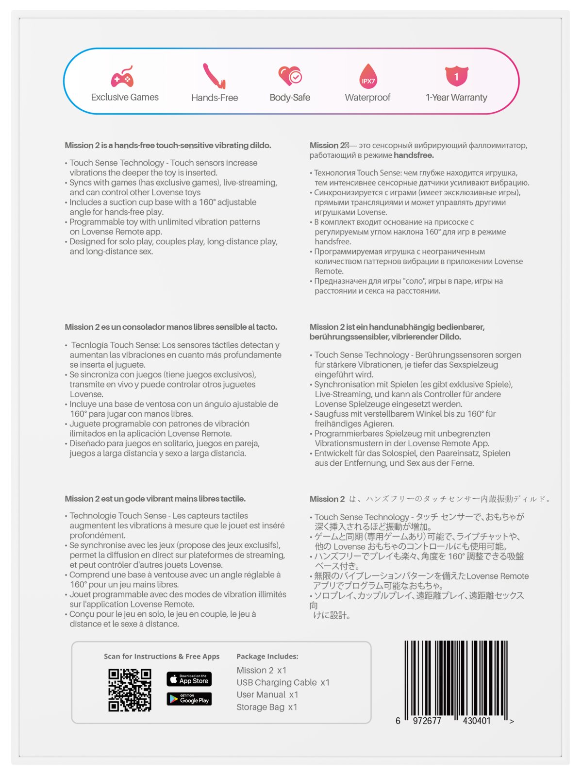 Interaktivní vibrátor Mission 2 má odnímatelnou přísavku a dotykové senzory. Navíc lze ovládat mobilem, a to prakticky odkudkoliv na světě.