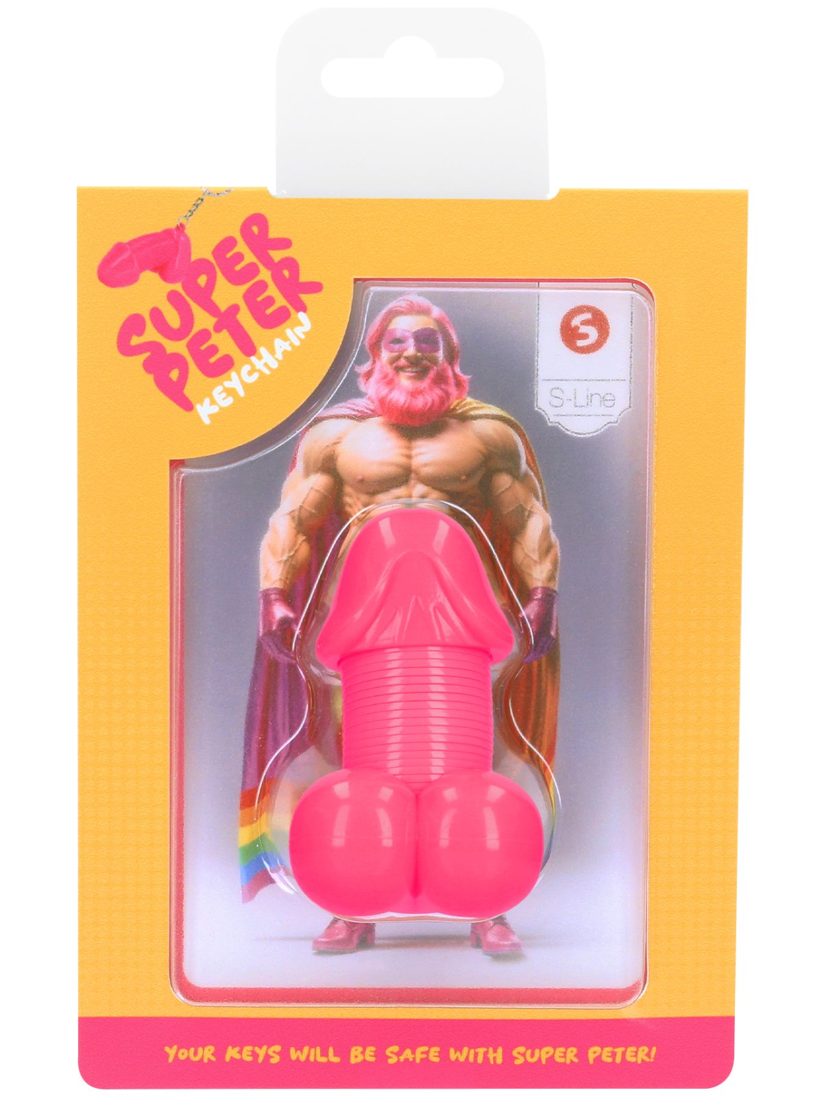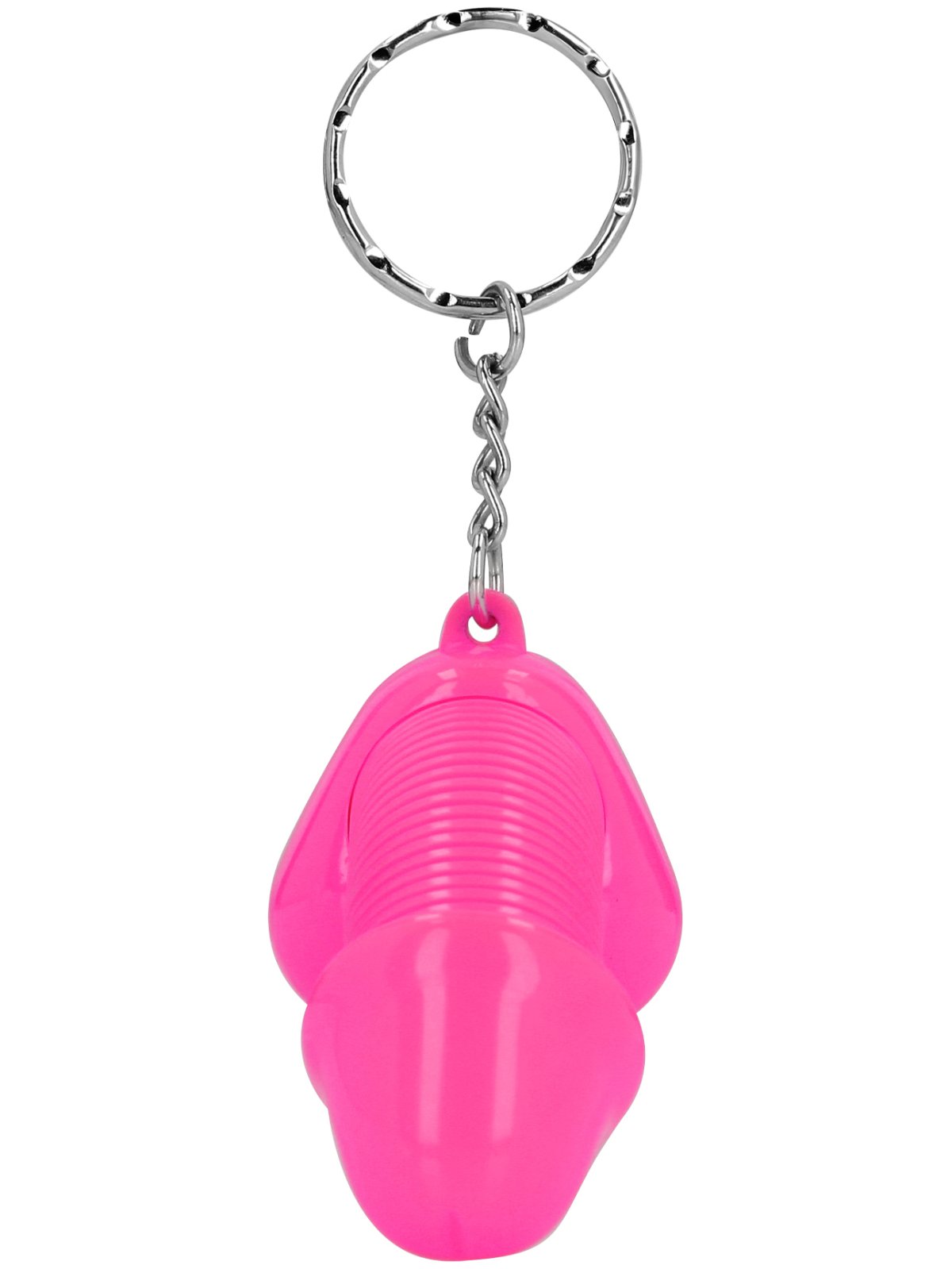 Klíčenka má tvar penisu a kroužek na pověšení. Díky pružince mezi žaludem a varlaty se penis vtipně pohupuje a můžete ho i natahovat.