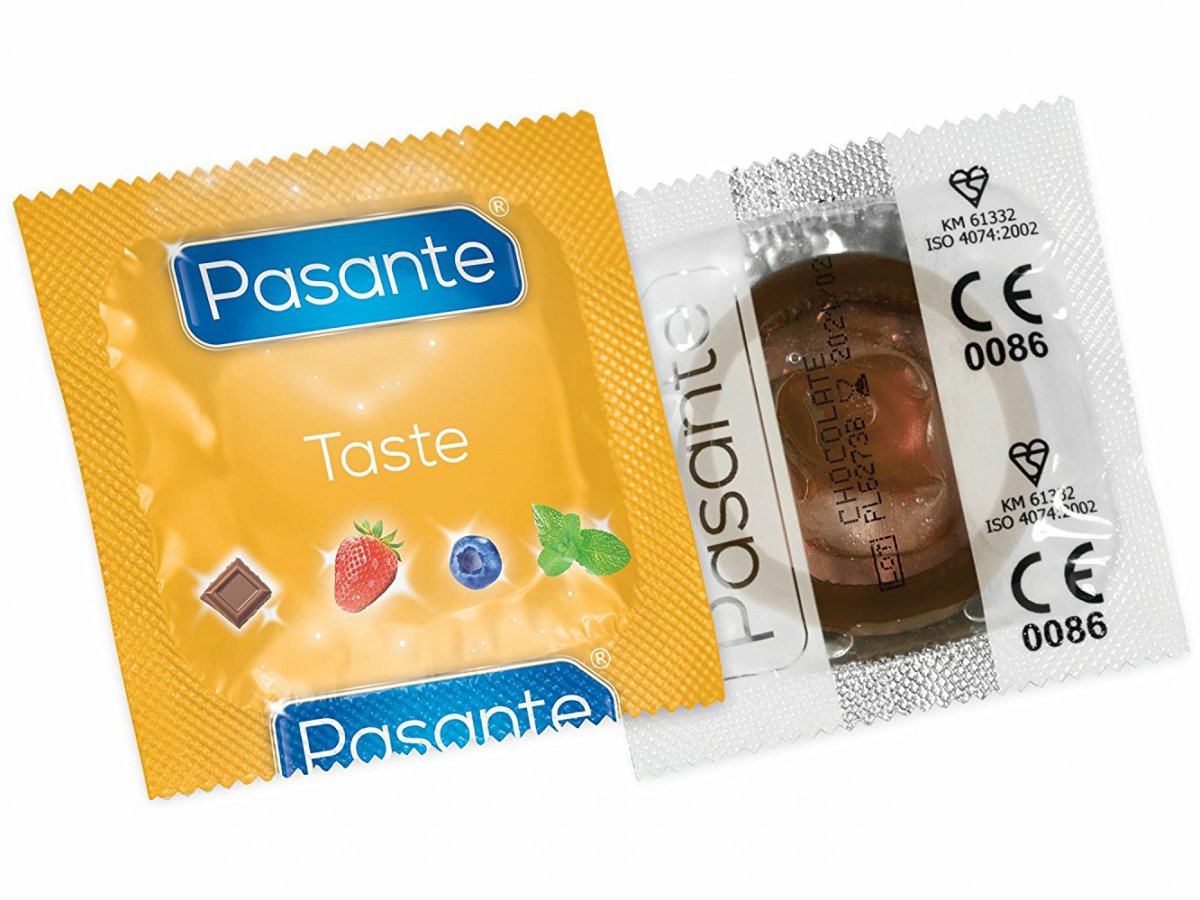 Kondom PASANTE Taste Chocolate Temptation z přírodního latexu – voňavý, s čokoládovým aroma.
