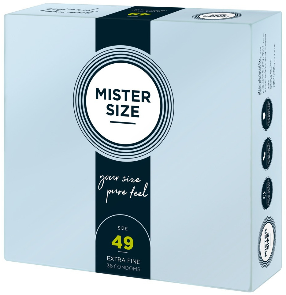 Kondomy MISTER SIZE 49 mm jsou určeny pro muže s průměrem penisu 3,2–3,4 cm. Díky tloušťce pouhých 0,05 mm je téměř neucítíte – budou jako vaše druhá kůže