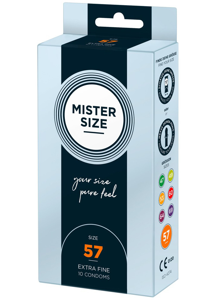 Kondomy MISTER SIZE 57 mm jsou určeny pro muže s průměrem penisu cca 3,8–4,3 cm. Díky tloušťce pouhých 0,05 mm je téměř neucítíte – budou jako vaše druhá kůže