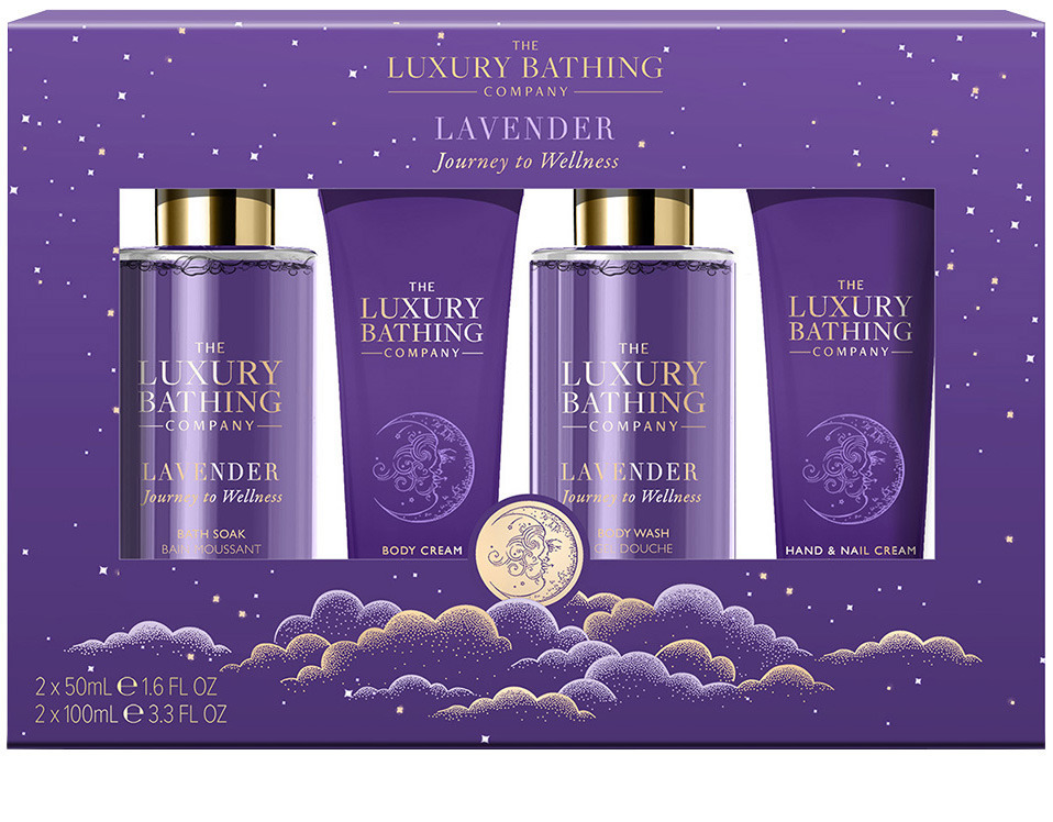 Zrelaxujte svou mysl a užijte si klidný spánek díky kosmetické sadě Journey to Wellness od The Luxury Bathing Company, která vás zahalí do uklidňující vůně levandule.