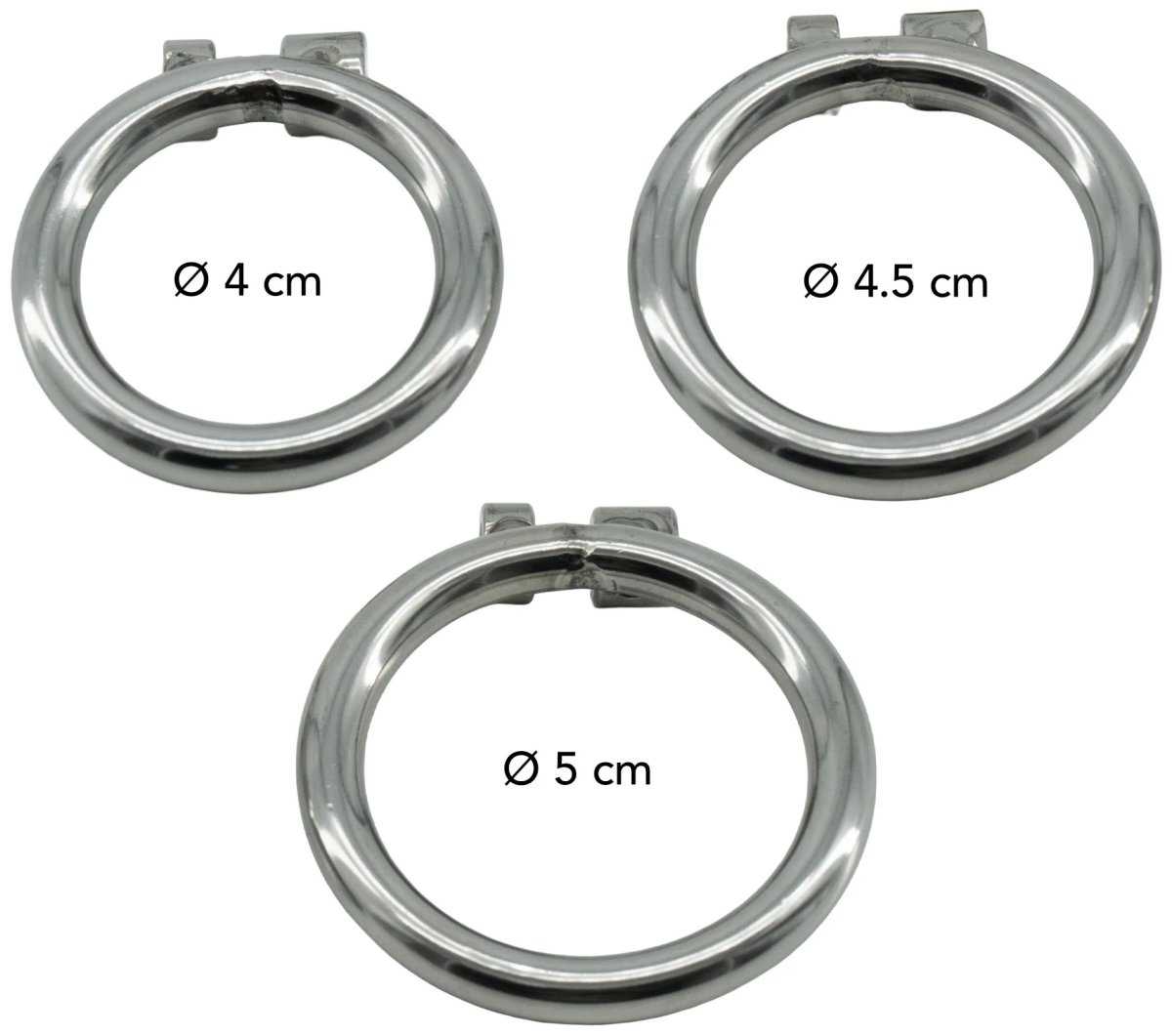 - Rozměry: celková délka 4,5 cm, vnitřní délka 4 cm, vnitřní průměr kroužků 4; 4,5 a 5 cm