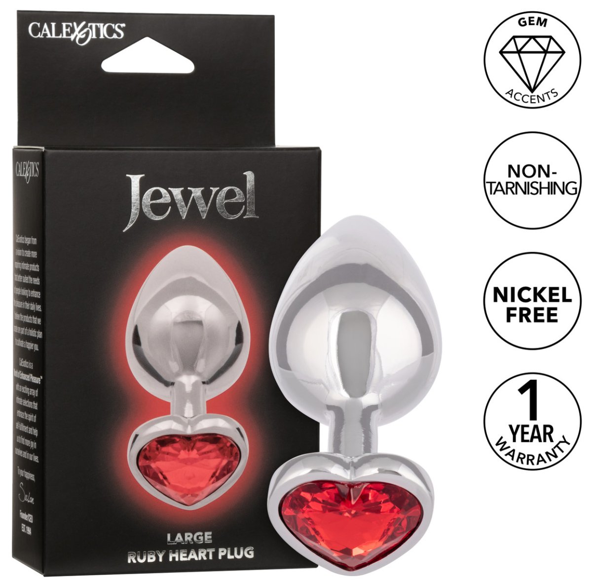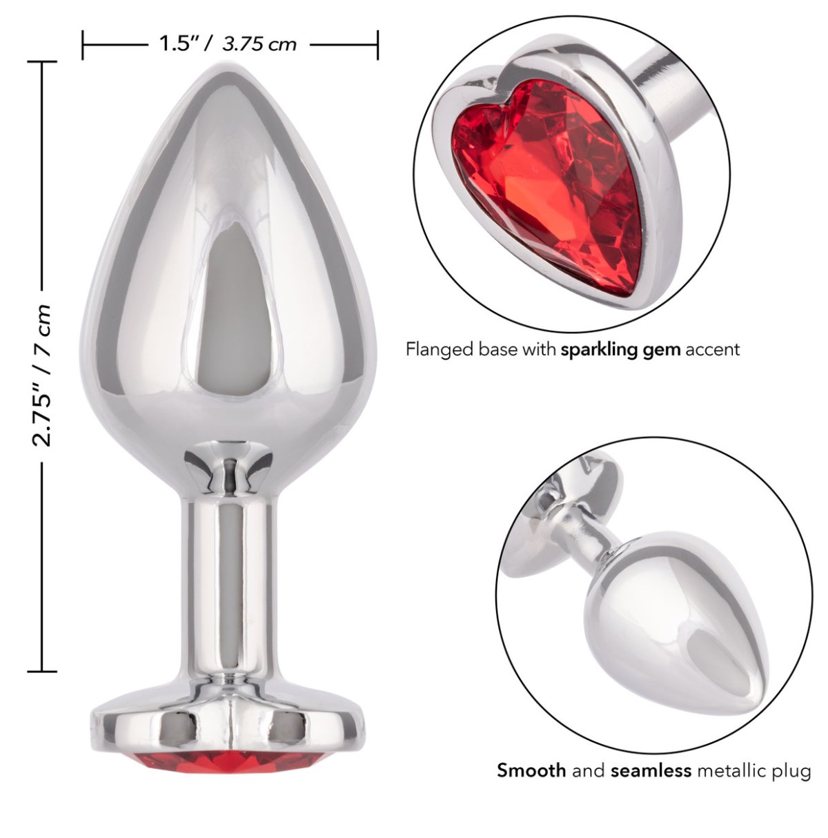 Kolík má klasický tvar, takže se v zadečku udrží i během pohybu. Anální zarážka ve tvaru srdce je zdobená krystalem a zajišťuje bezpečné hry.