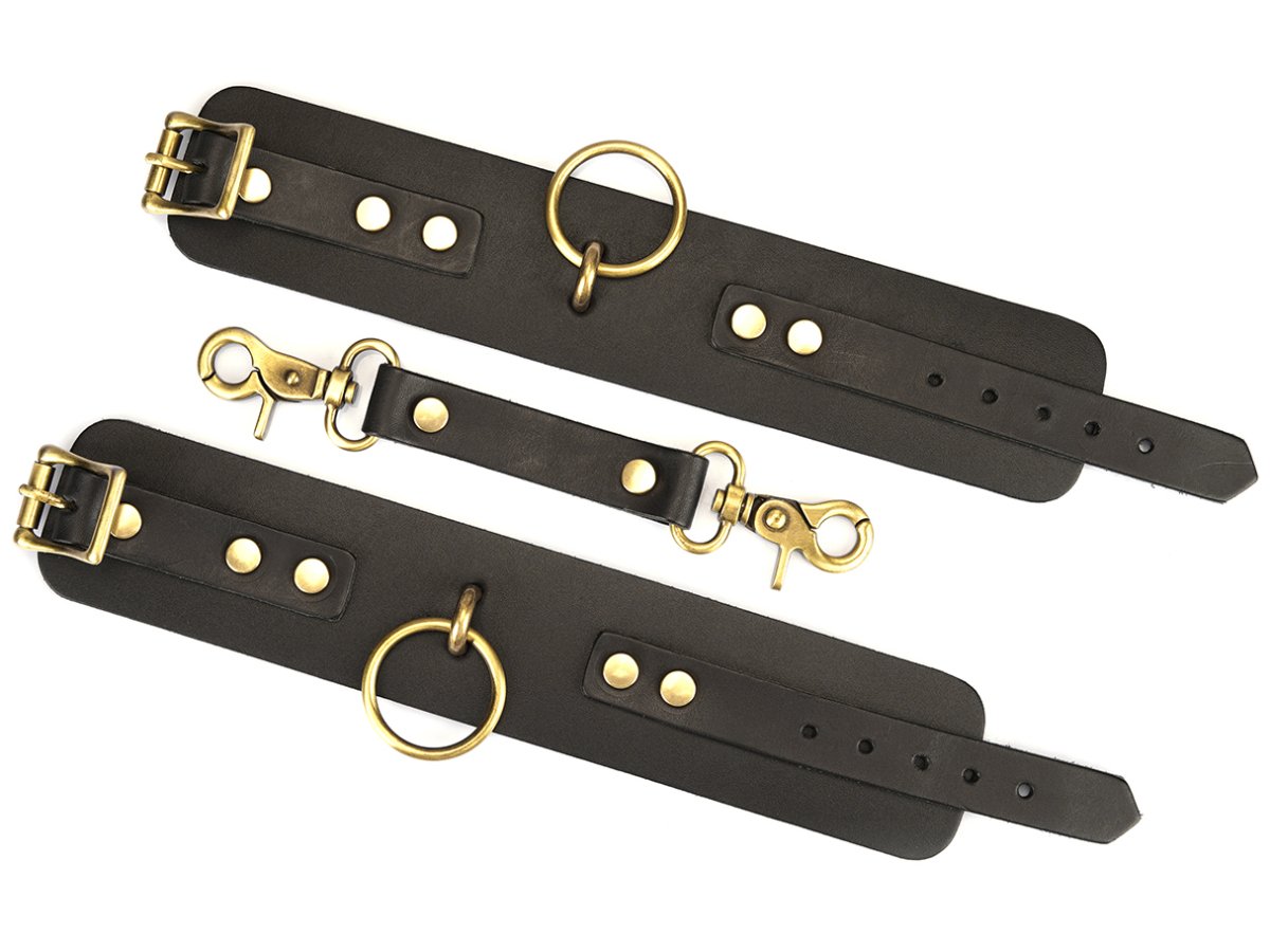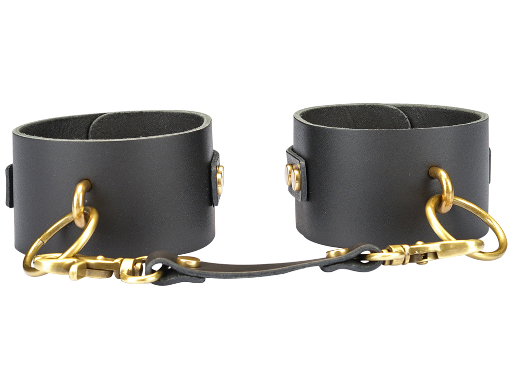 Pouta jsou vyrobená z tlusté hovězí kůže – jsou pevná a odolná a hodí se i na drsnější BDSM hry. Jsou spojená koženým páskem s rychloupínacími karabinkami.