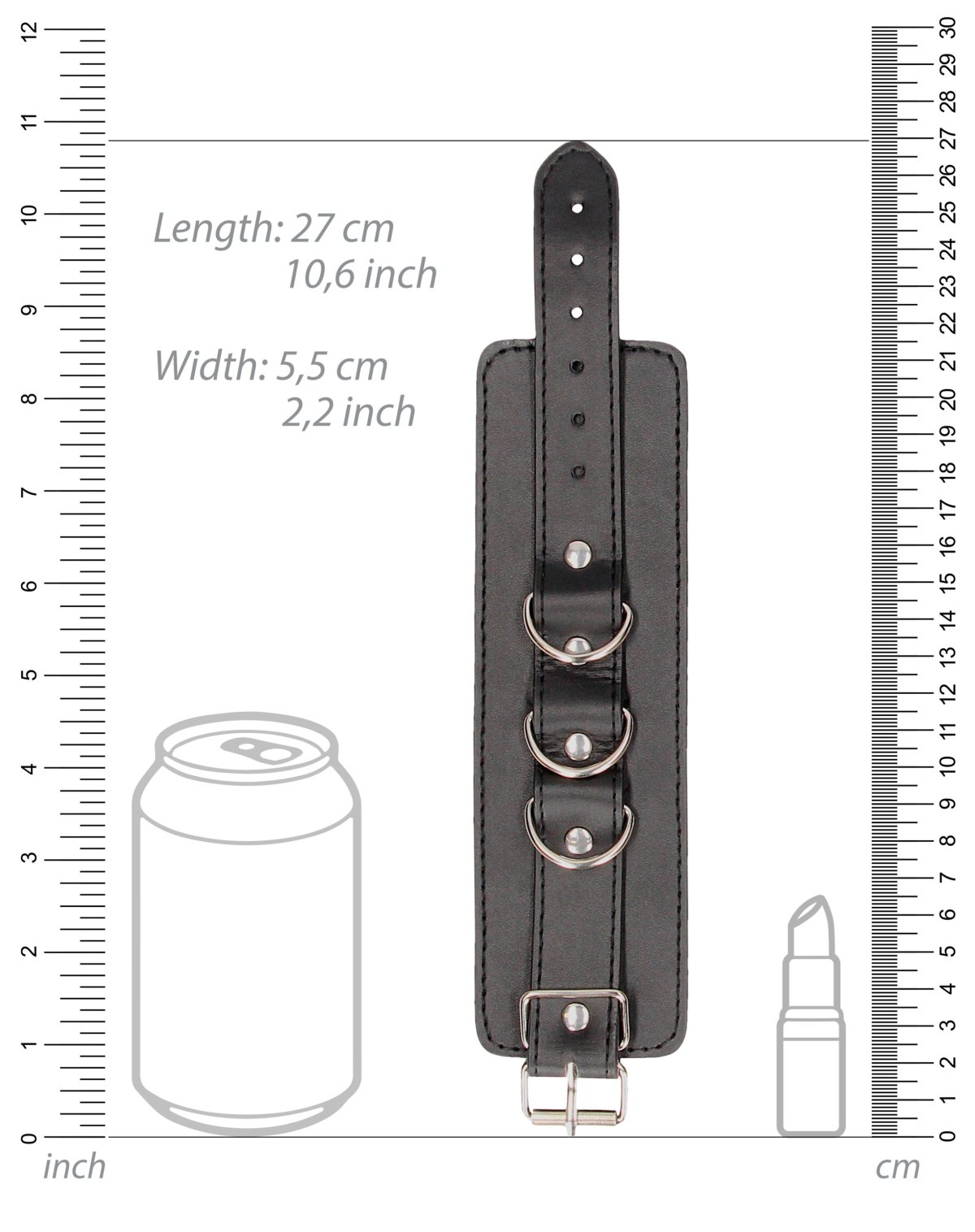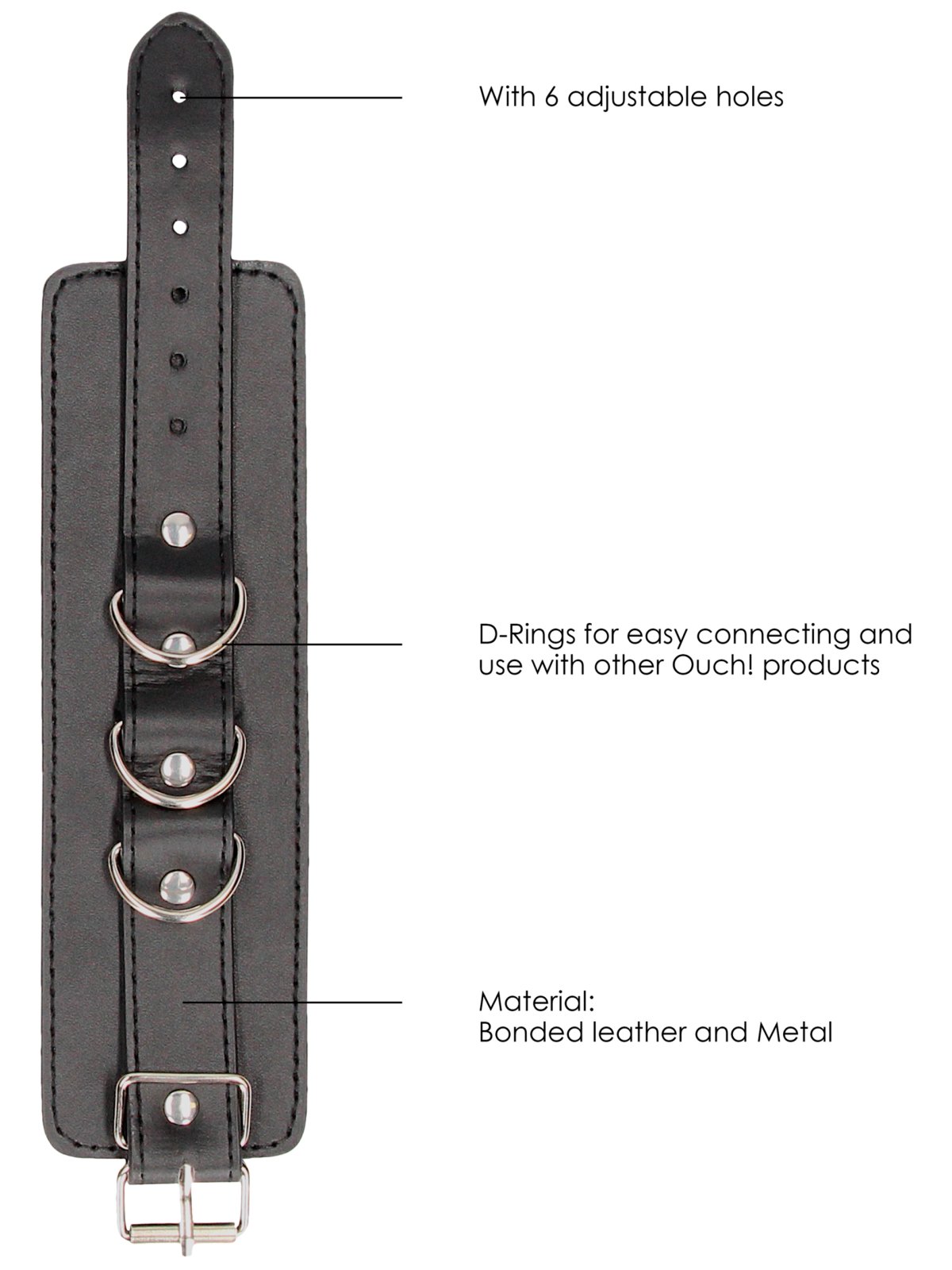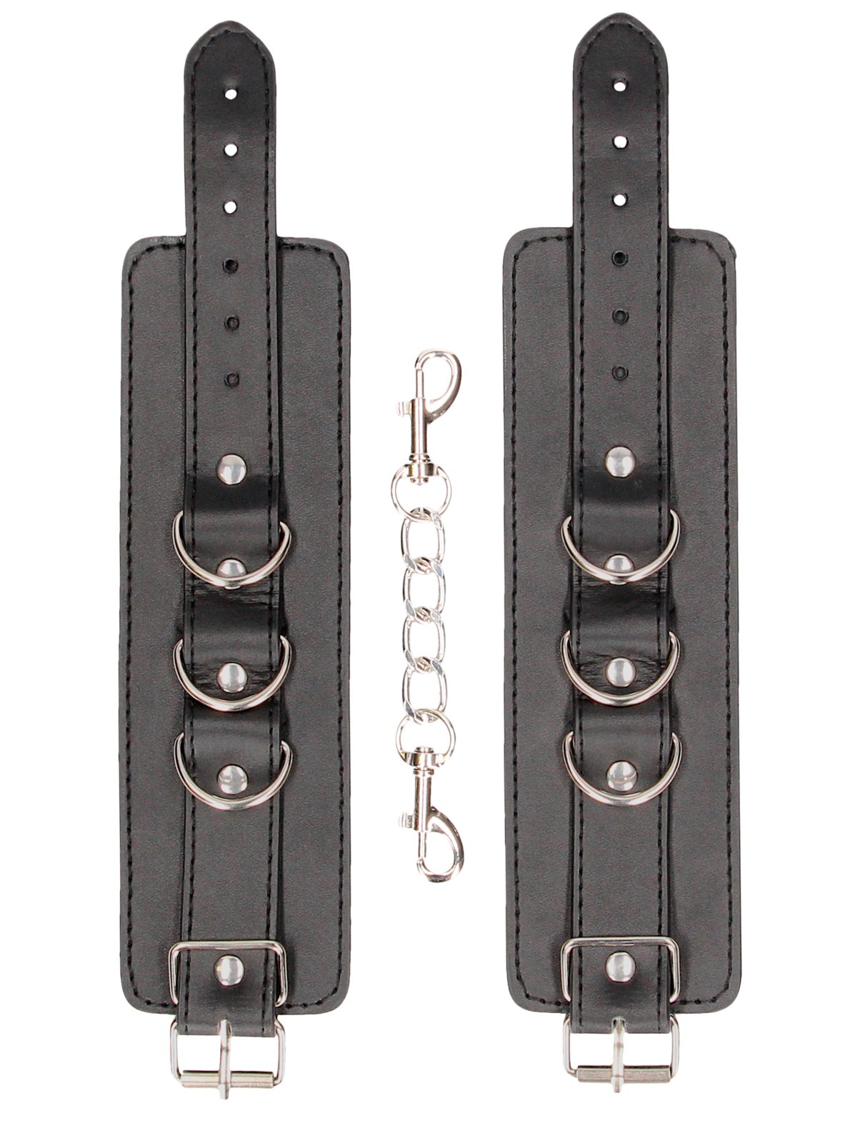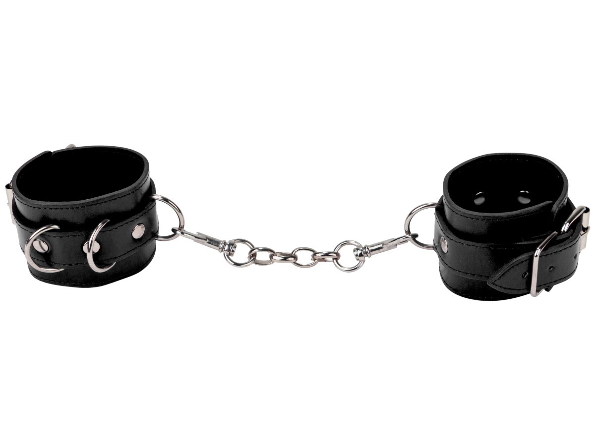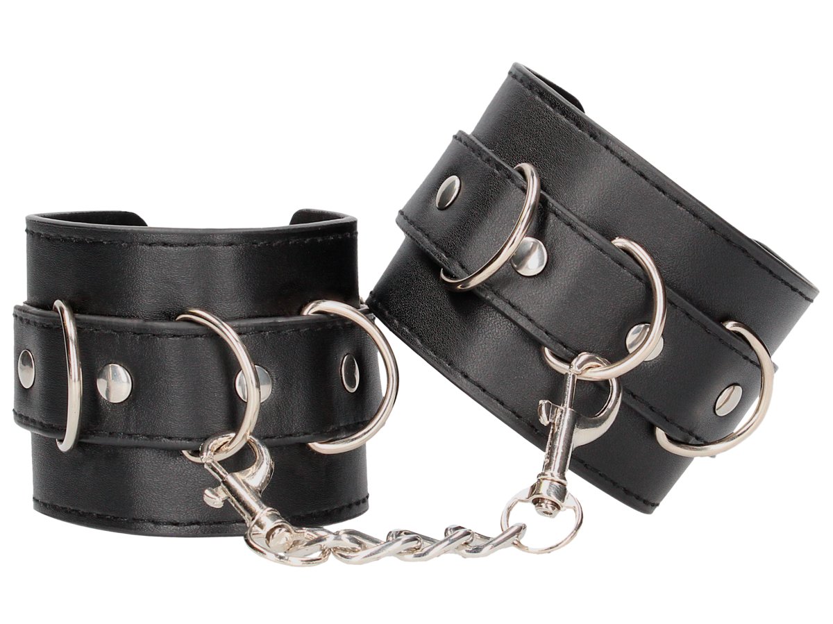 Pouta mají 3 D-kroužky – lze je spojit krátkým kovovým řetízkem s karabinkami, nebo je připnout k jiným bondage a BDSM pomůckám, třeba roztahovací tyči.
