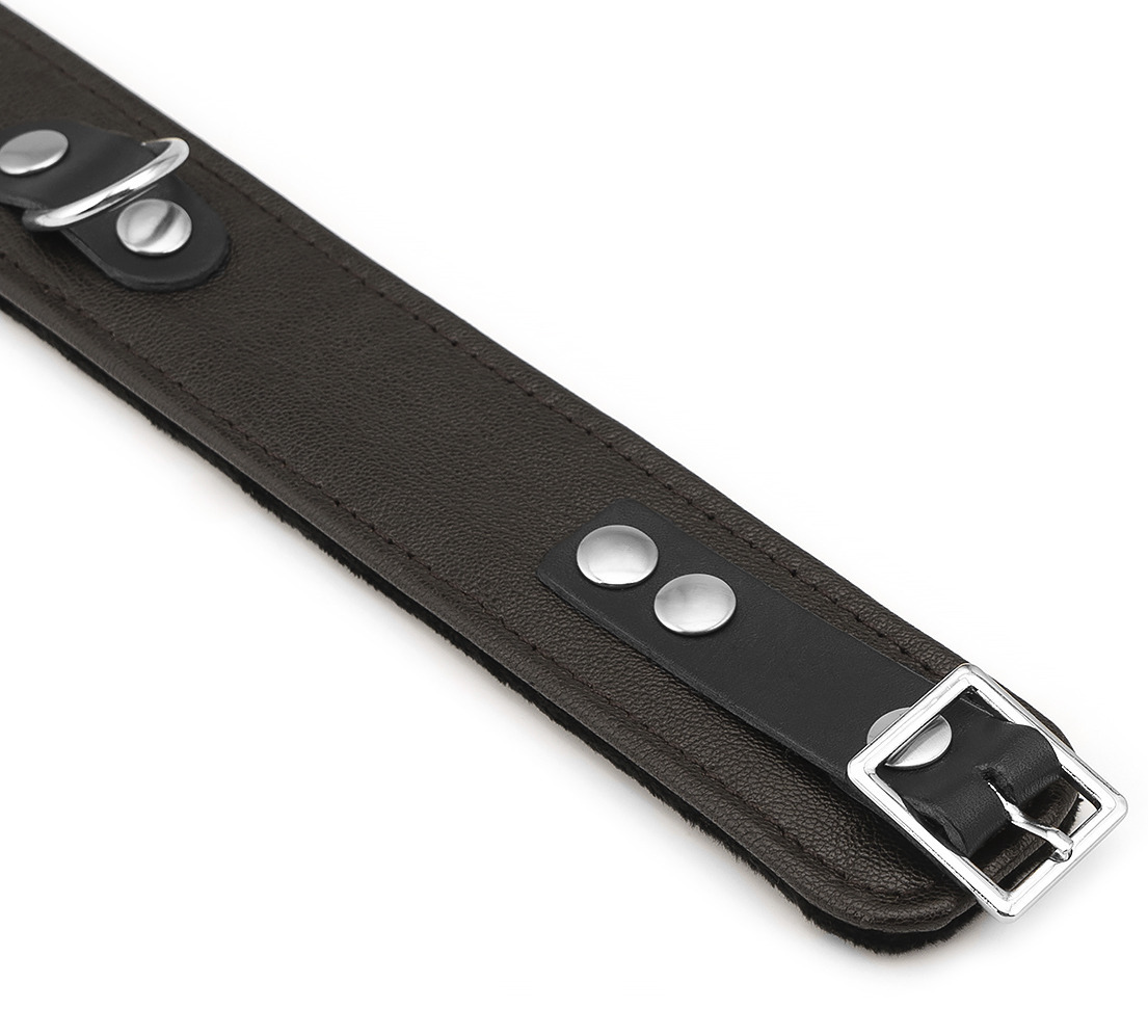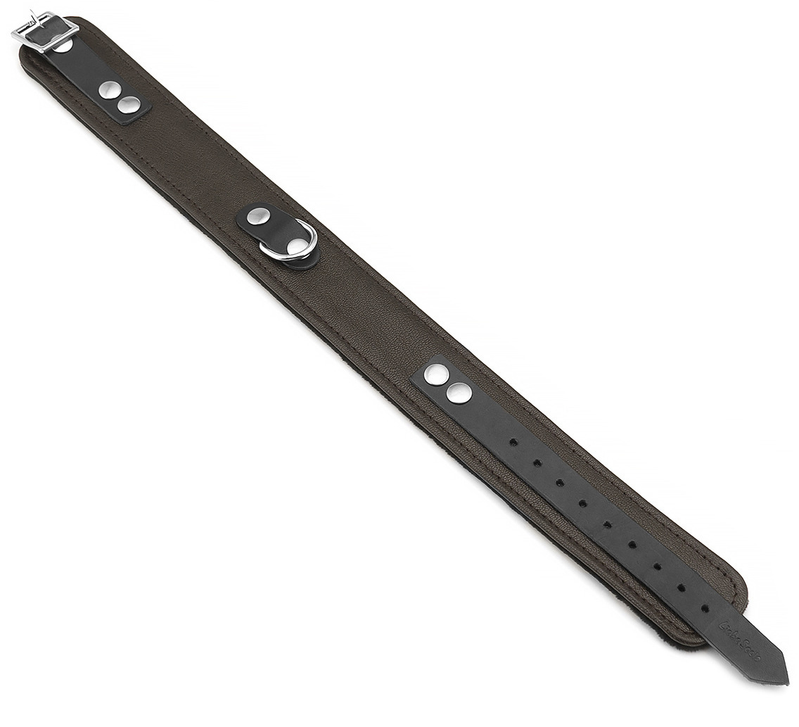 Obojek je vyrobený z kvalitní jehněčí kůže . Z vnitřní strany má měkké polstrování – je podšitý hebkým sametem pro pohodlnější nošení.