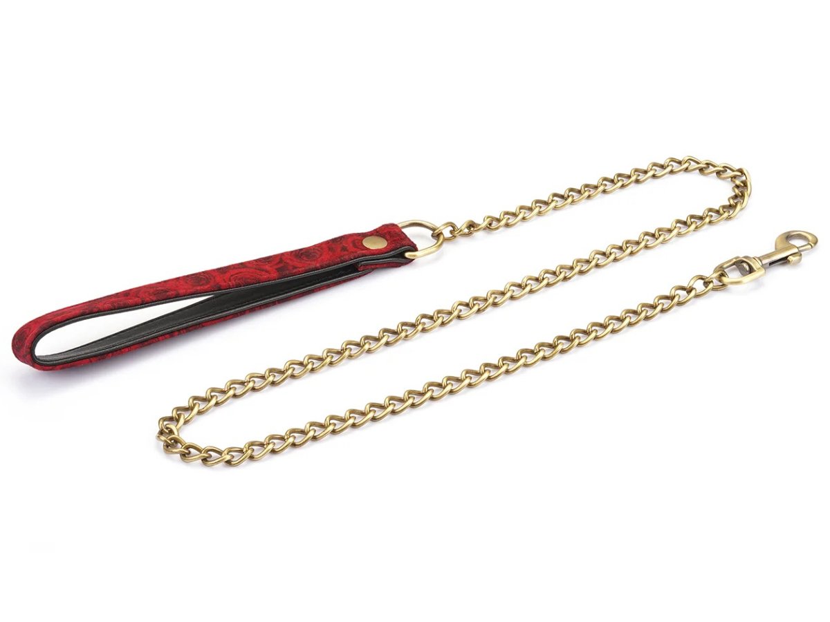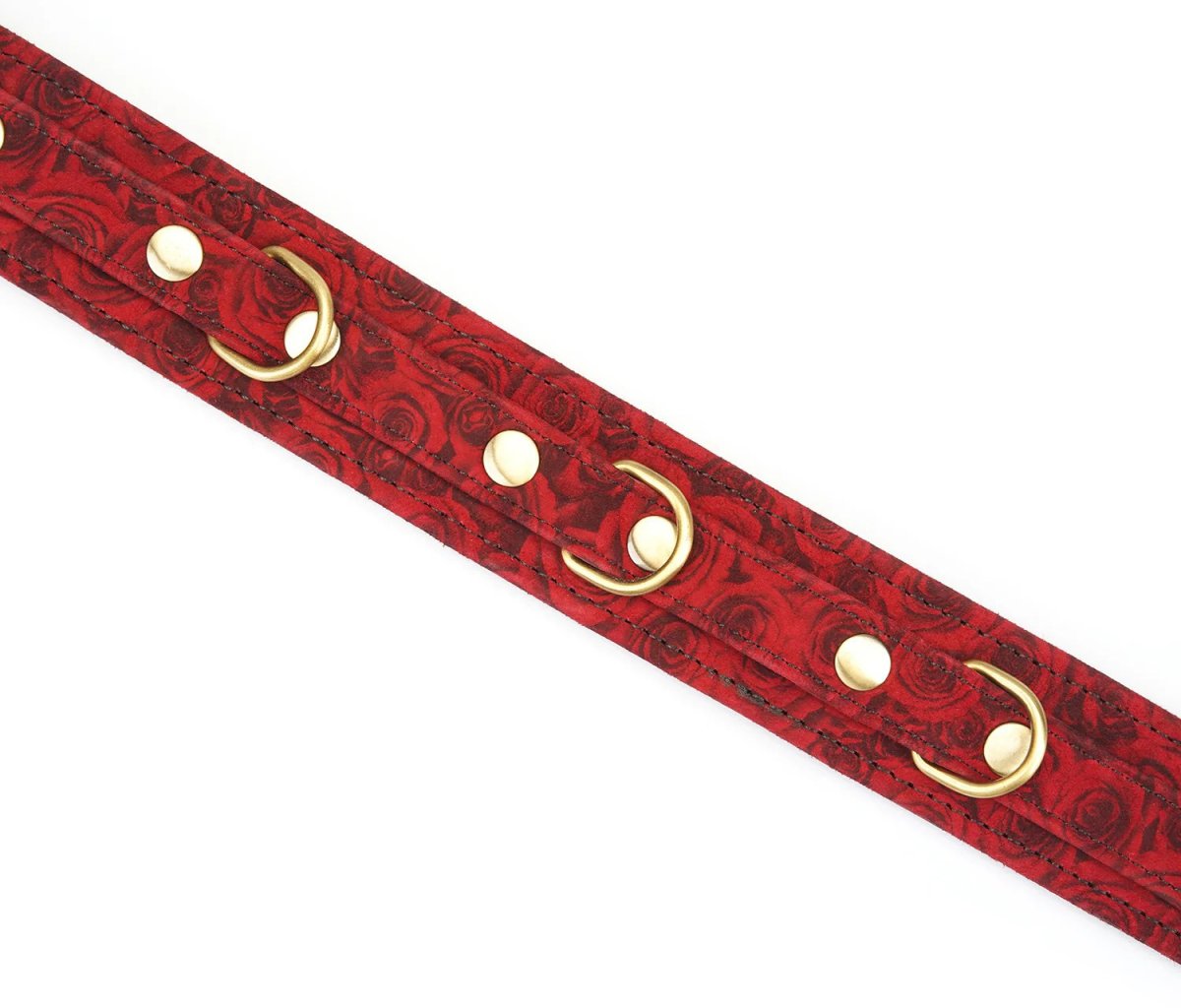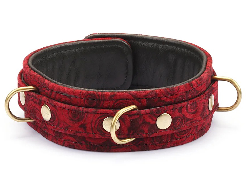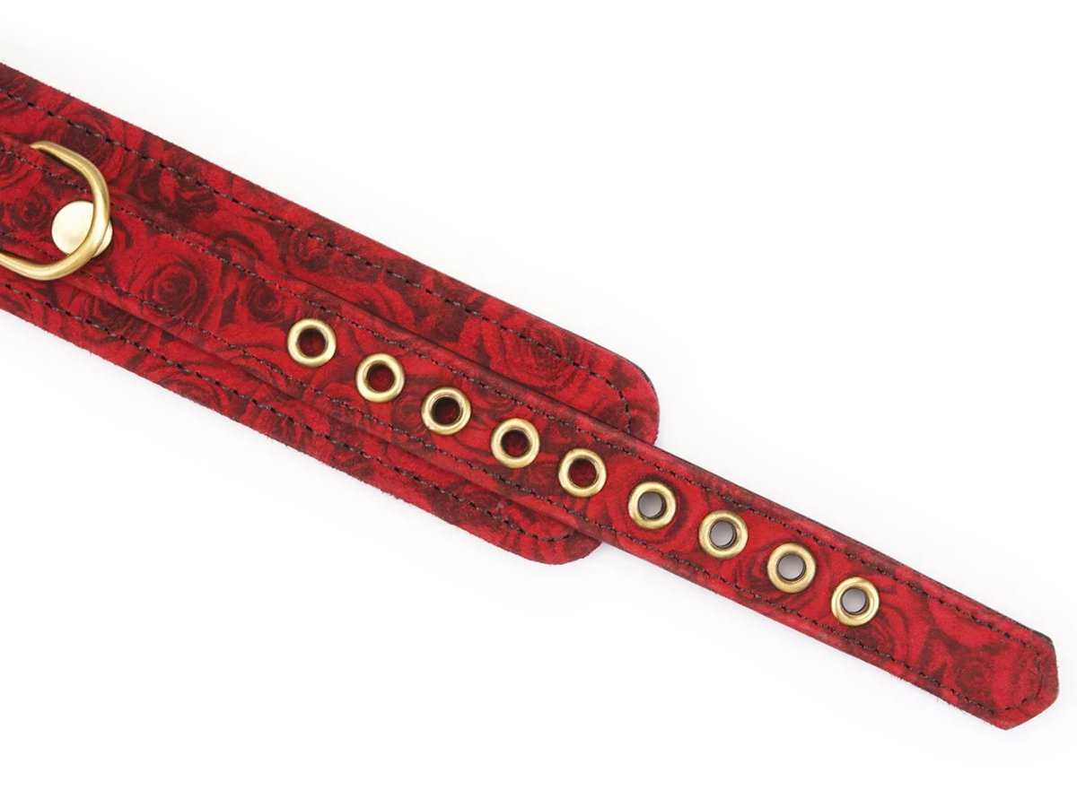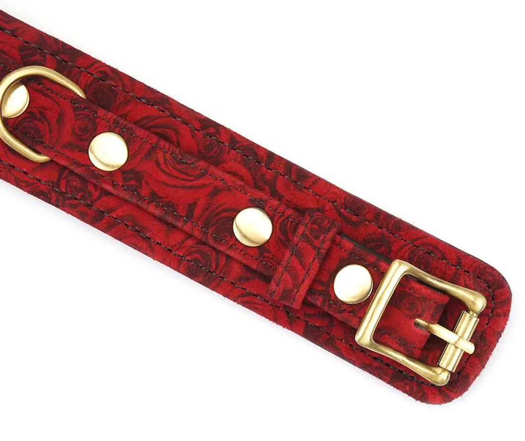 Obojek s vodítkem Red Rosy je vyrobený z jehněčí kůže s potiskem s motivem růží. Je změkčený, takže se pohodlně nosí.