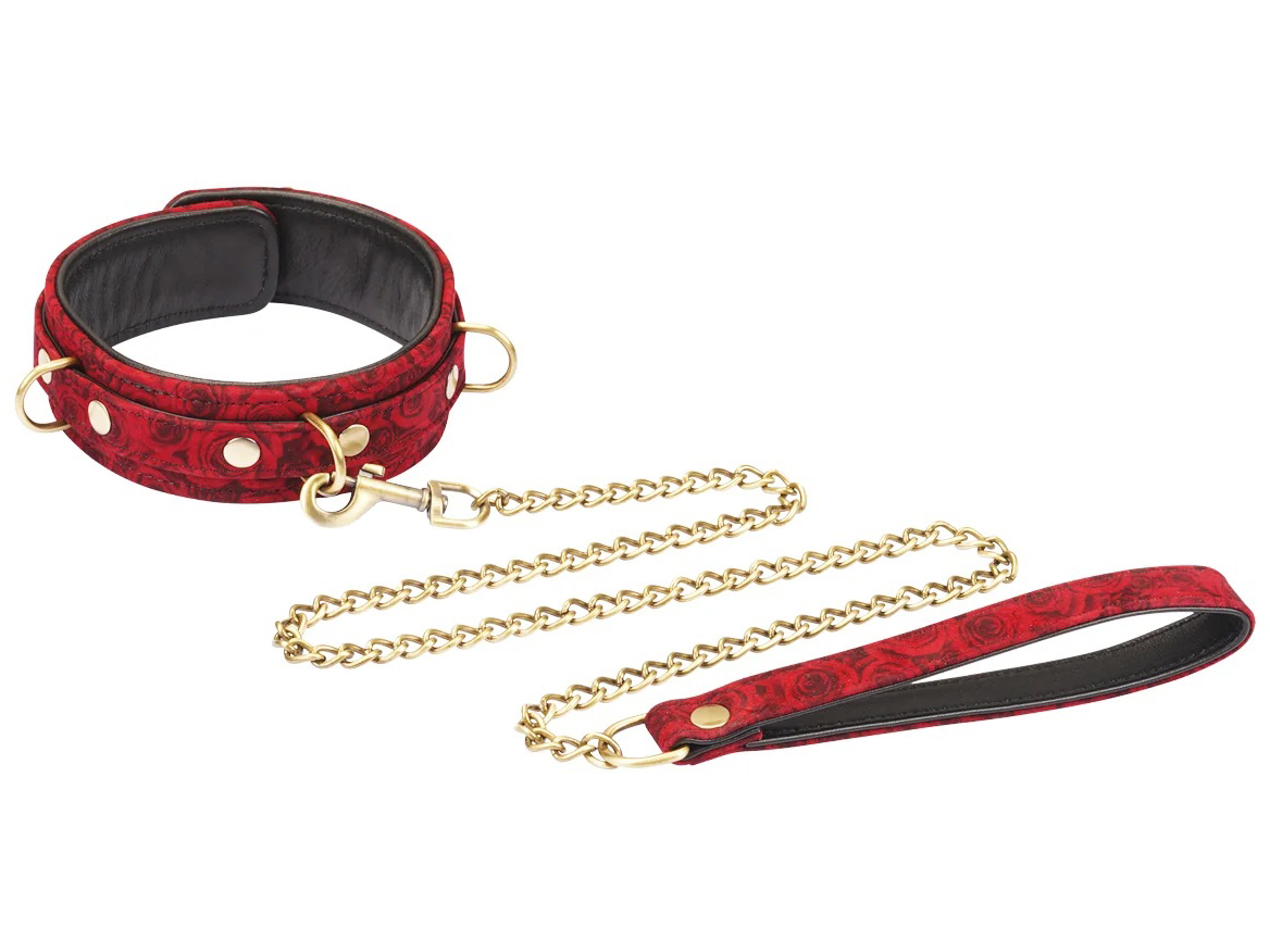 Kožený obojek s vodítkem Red Rosy