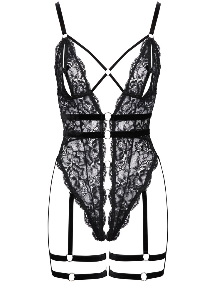 Krajkové body s ozdobnými podvazky a řemínky Cottelli