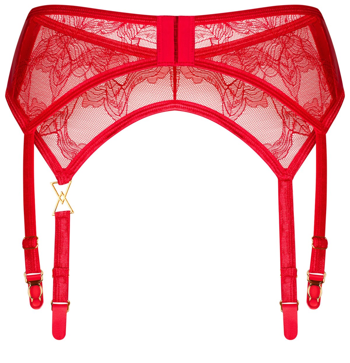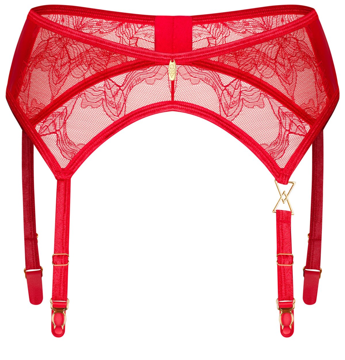 Podvazkový pás je ušitý z měkké a elastické průsvitné krajky, která se pohodlně nosí. Krajka je doplněná o wetlook vsadky na bocích.