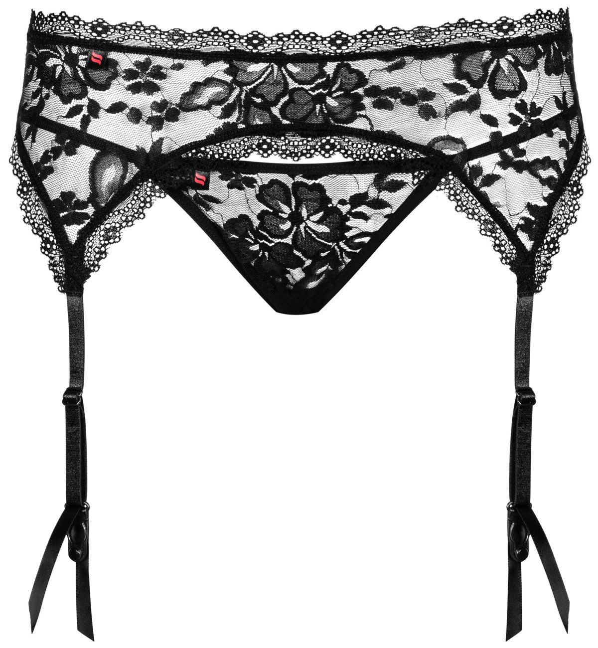 Krajkový podvazkový pás Obsessive Catia + tanga