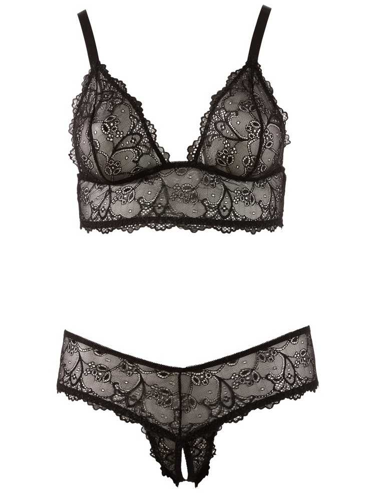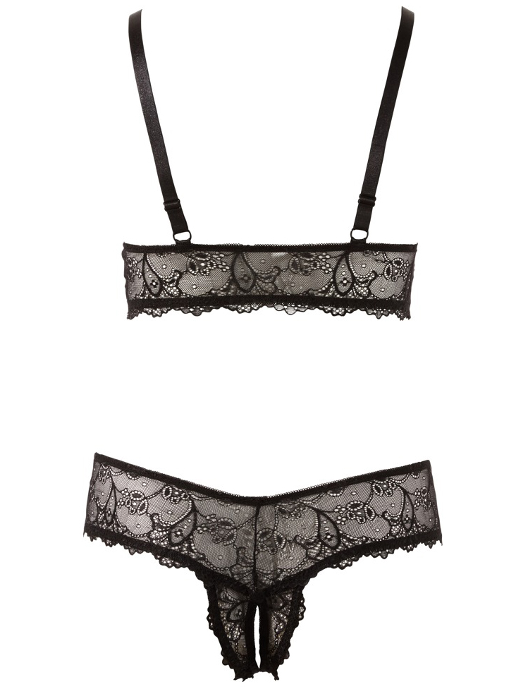 Krajkový set Cottelli - podprsenka a kalhotky s otevřeným rozkrokem