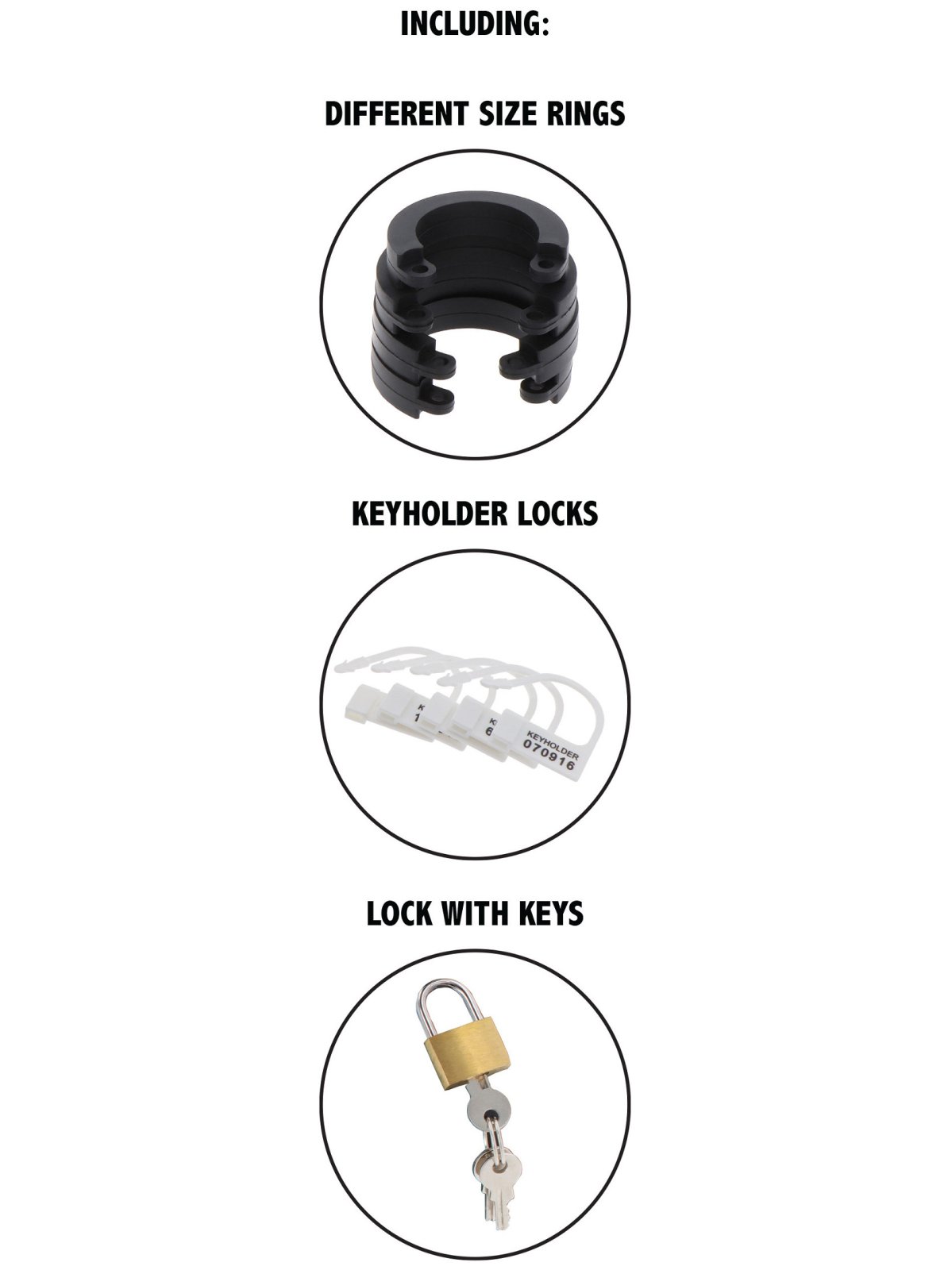 Na svém místě drží klec díky kroužku na varlata – v balení najdete hned 5 kroužků o různém průměru. Varlatům tak dopřejete větší či menší svobodu a pohodlí podle potřeby.
