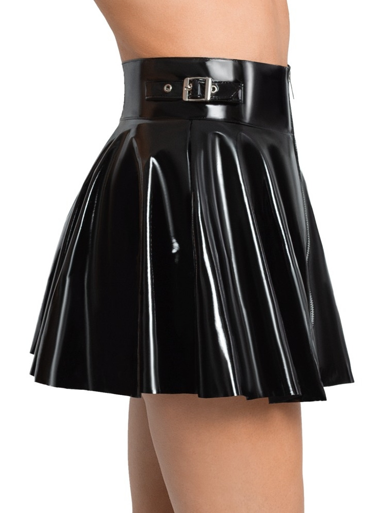 Lakovaná nabíraná minisukně se zipem a přezkami Black Level
