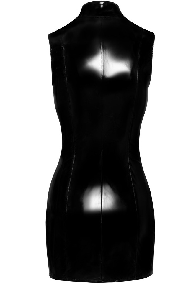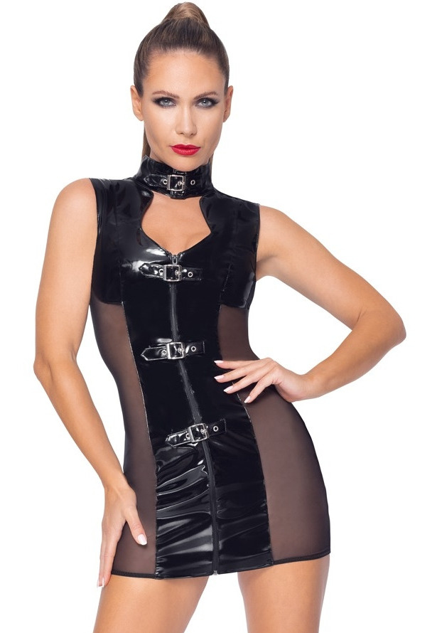 Lakované minišaty s průsvitnými vsadkami zipem a přezkami Black Level