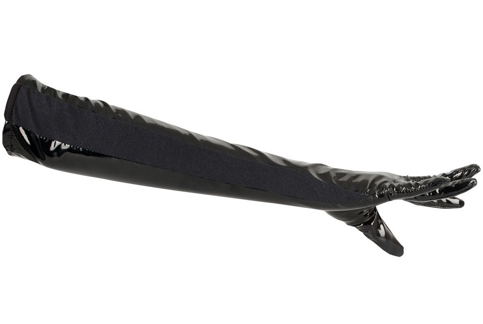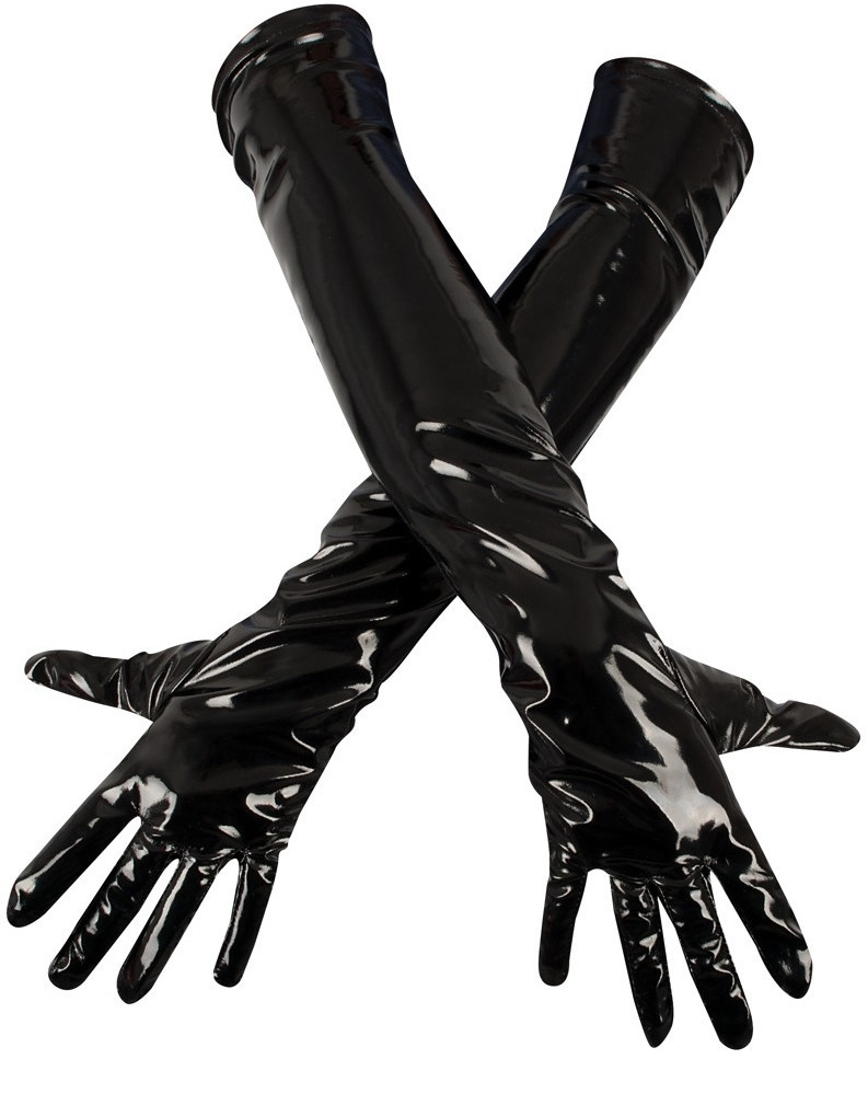 Rukavice jsou vyrobeny z lesklého a mírně elastického lacku doplněného o pružné vsadky pro pohodlnější nošení.