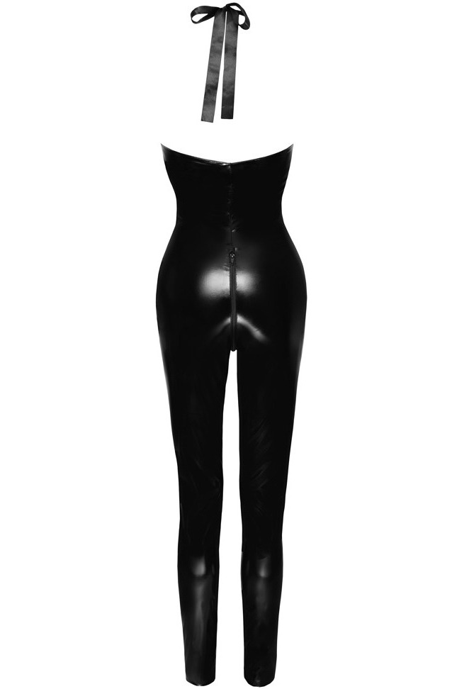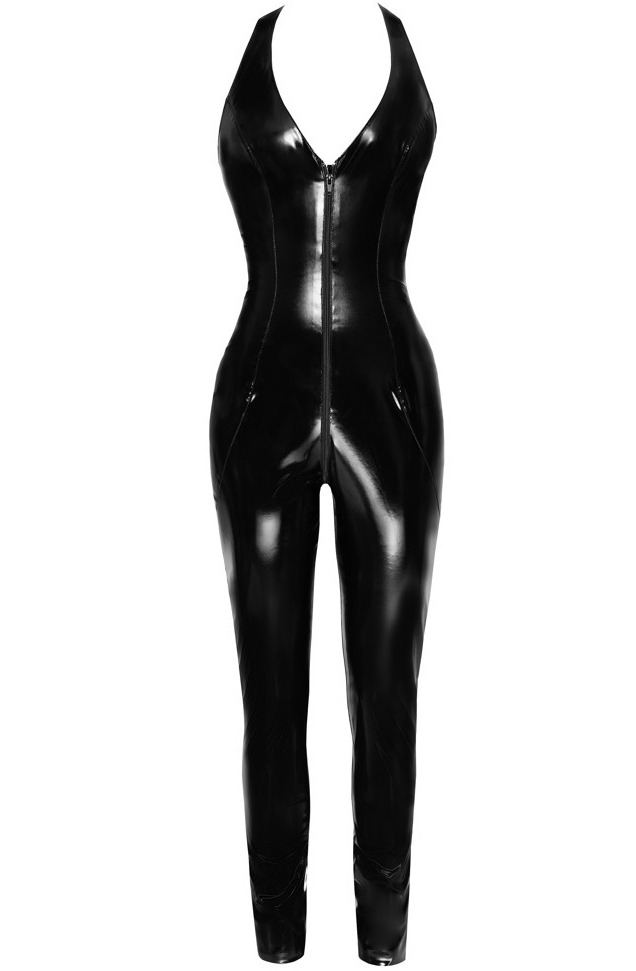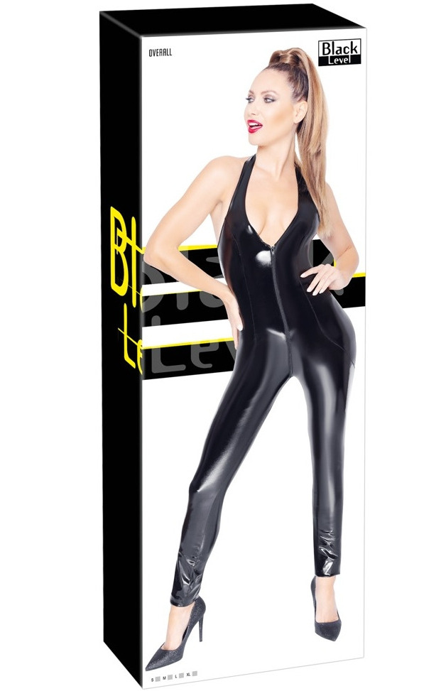 Lakovaný overal se zavazováním za krkem a dvoucestným zipem Black Level